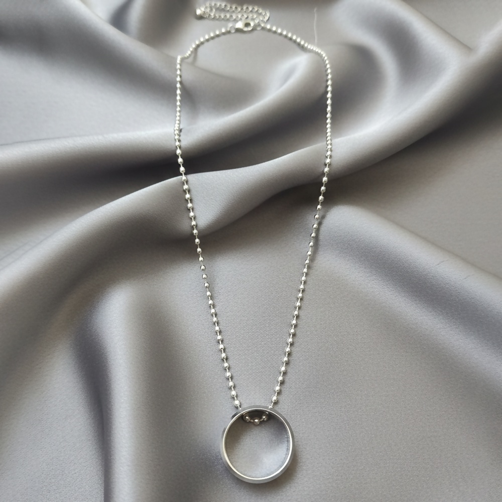 This elegant silver round shape pendant necklace features a sleek, modern design that adds a bold yet minimal touch to your look. Crafted with a smooth circular pendant and paired with a classic silver beaded chain, it offers a perfect balance of style and comfort.