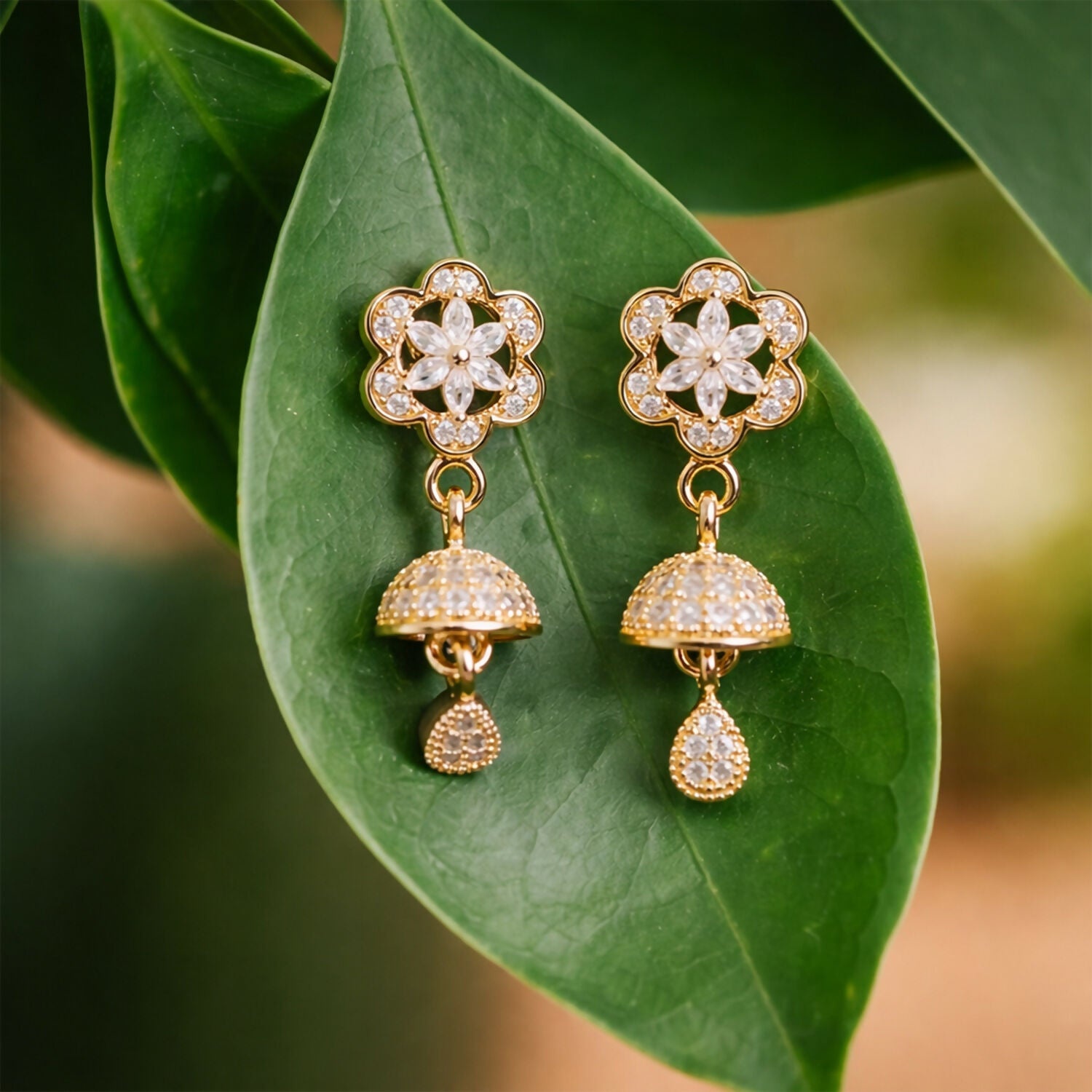 Graceful Shine with a Modern Edge Illuminate your look with these charming rose-gold-toned drop earrings. The design features a unique, sharp geometric stud that transitions into a delicate, dangling floral star, creating a beautiful balance of strength and softness.