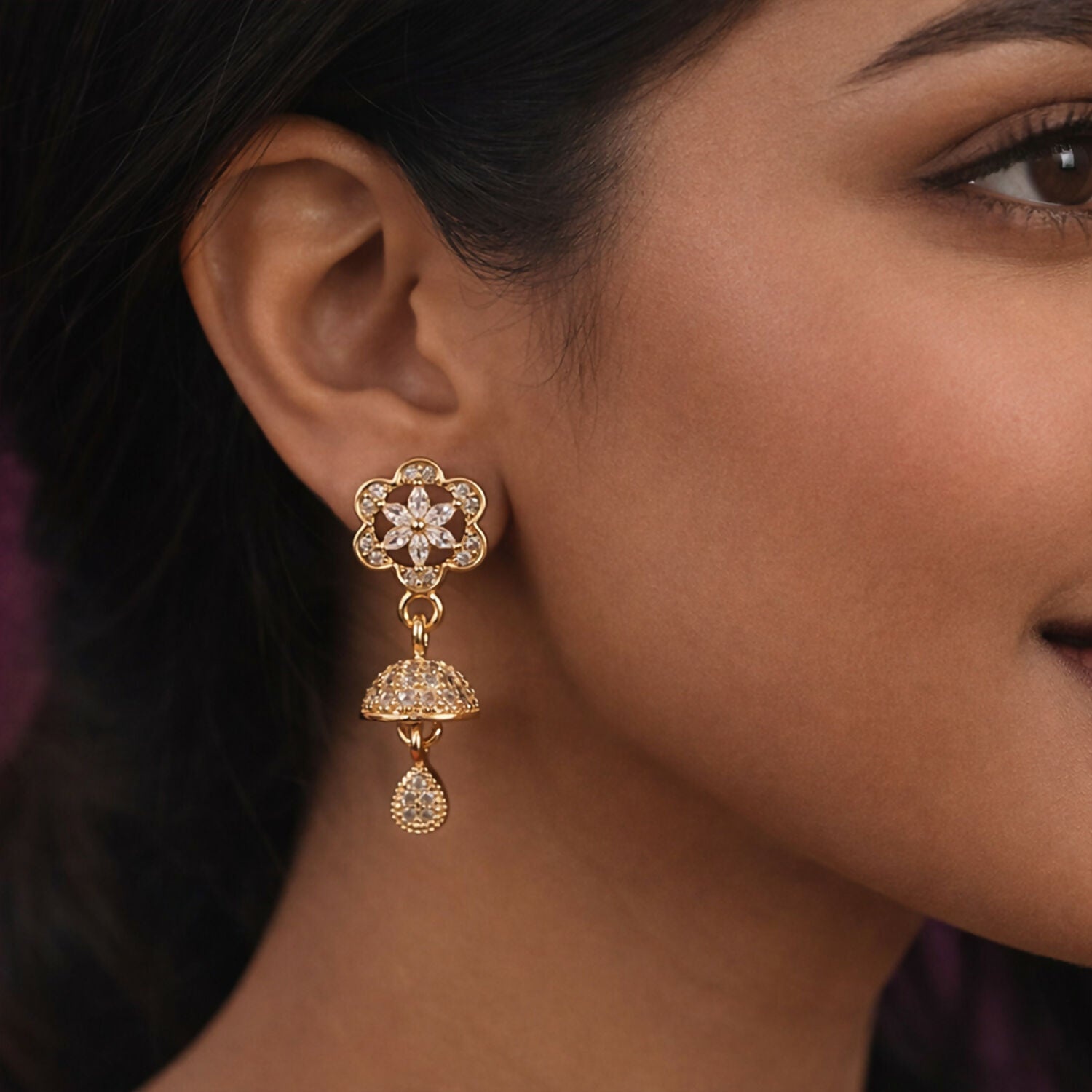 Intricate Crystal Pavé: Both the stud and the star drop are encrusted with brilliant clear crystals that catch light from every angle.