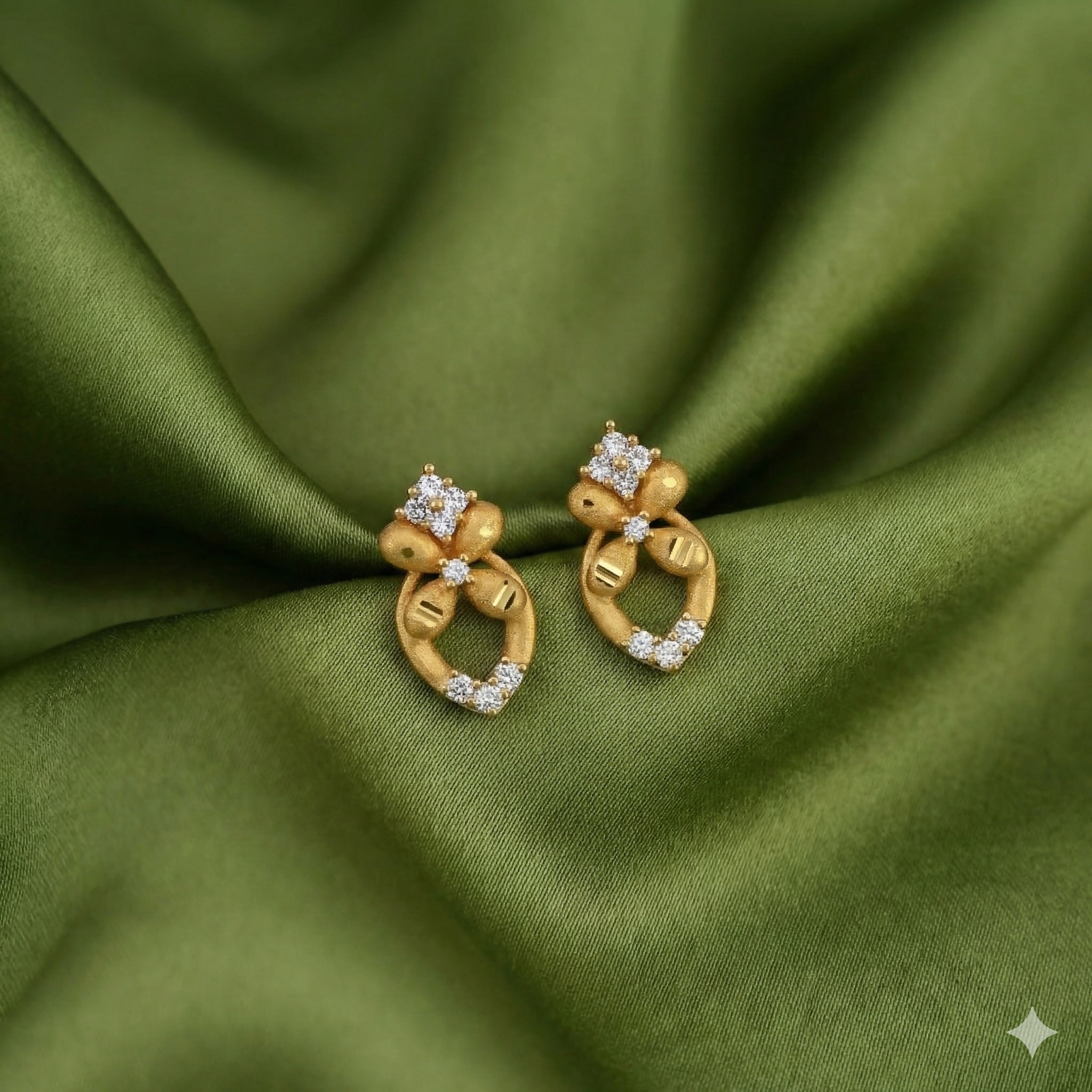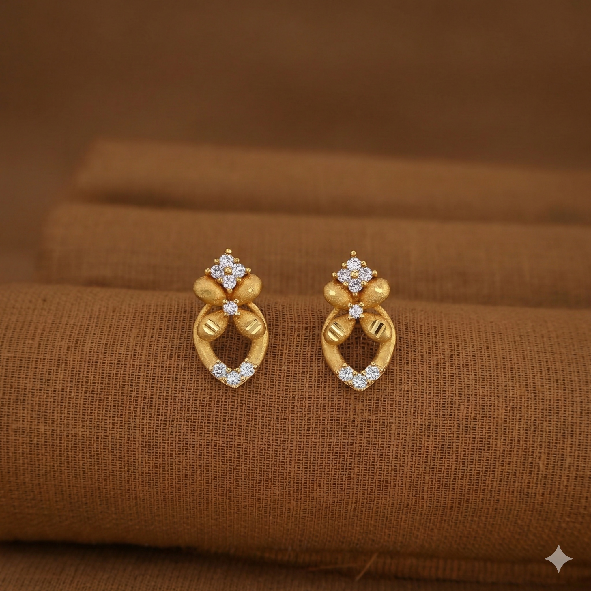 The matte-finish gold provides a rich, luxurious glow, while the precision-set Cubic Zirconia stones add a brilliant sparkle that catches the light from every angle. Lightweight and comfortable for all-day wear, these earrings are the perfect statement piece for weddings, anniversaries, or special celebrations.