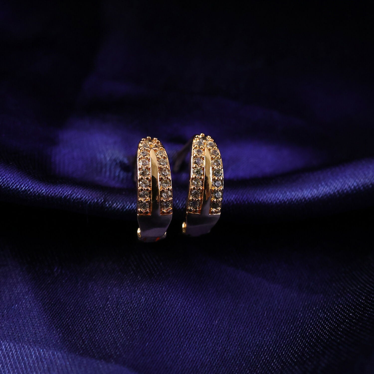These elegant hoop earrings feature a clean gold-tone finish with neatly set sparkling stones that give a refined and graceful look. The compact hoop style sits comfortably on the ears, making them suitable for everyday wear as well as special occasions. The balanced design adds shine without looking heavy, so it pairs easily with both traditional and western outfits. A versatile accessory that enhances your look with subtle glamour and timeless appeal.