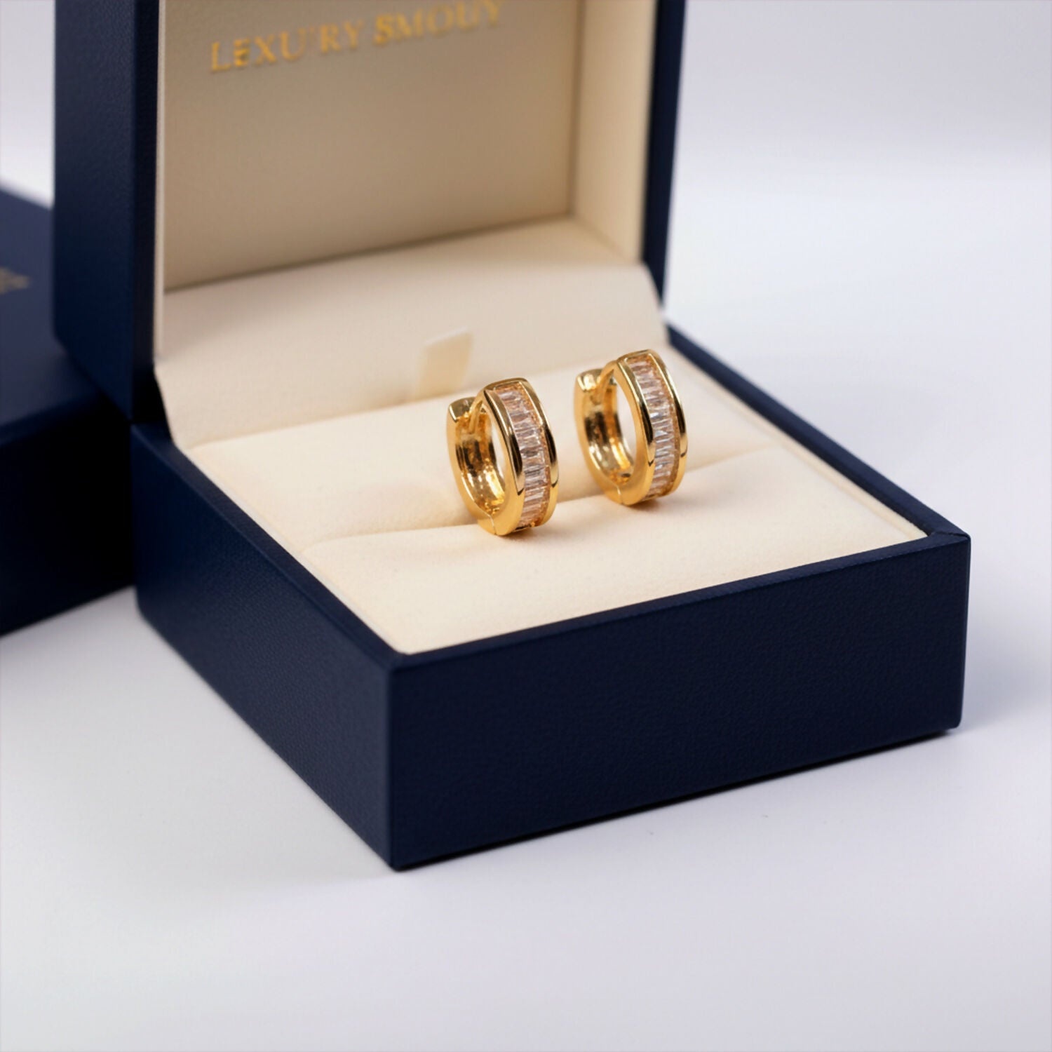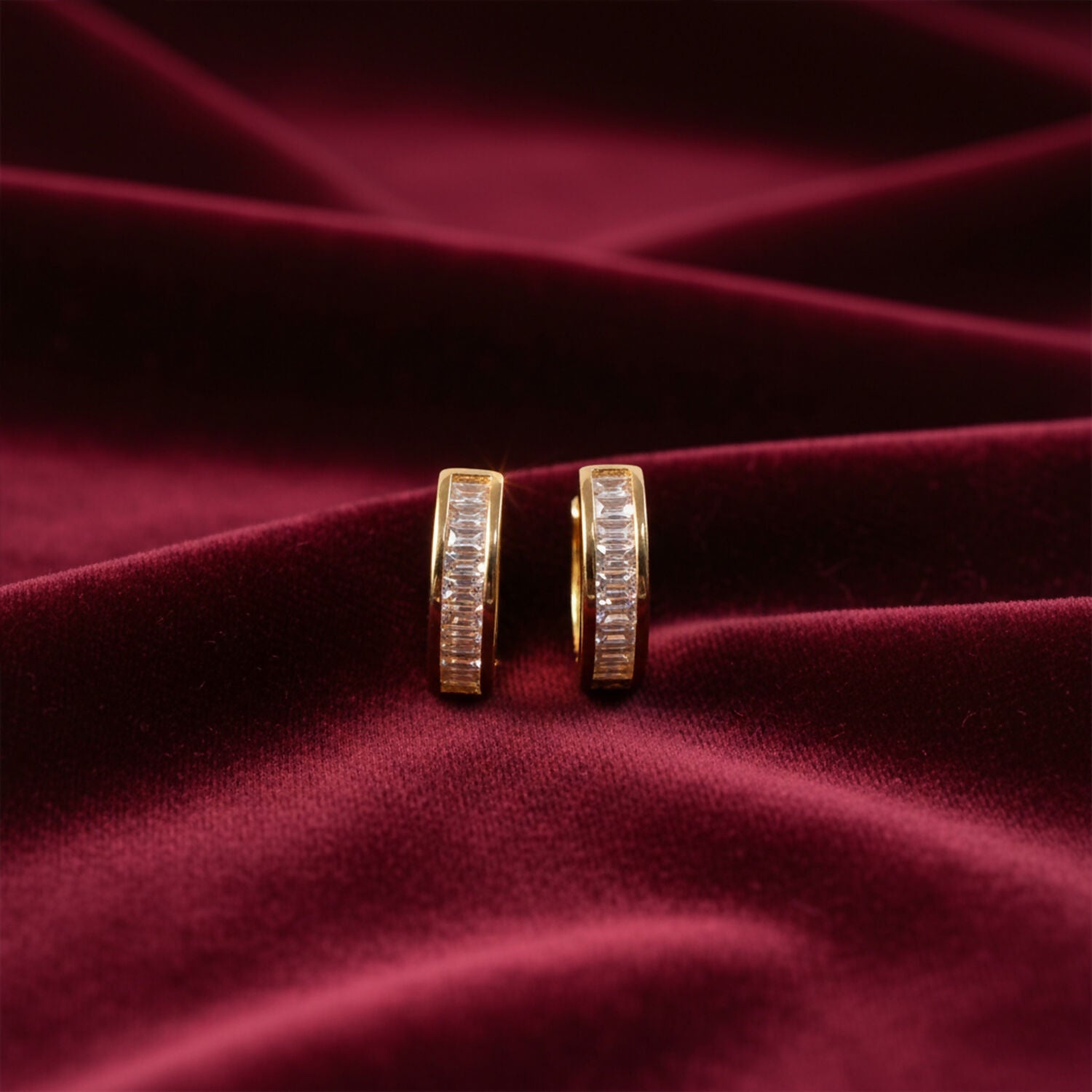 Yeh elegant hoop earrings classy aur clean look ke saath design kiye gaye hain. Golden finish ke saath neatly aligned crystal stones inhe ek premium appearance dete hain. Light weight design hone ki wajah se yeh poora din comfortable rehte hain aur regular use ke liye bhi perfect hain. Simple outfit ke saath bhi yeh earrings look ko instantly enhance kar dete hain. Daily wear, office, parties ya special occasions ke liye yeh ek stylish choice hai.