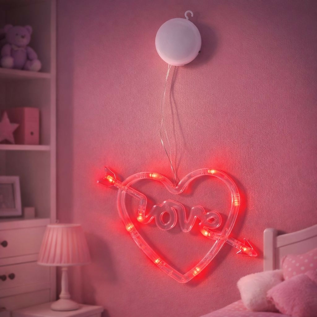 • Heart with Arrow Design – Stylish heart outline with arrow and “Love” text for eye-catching décor