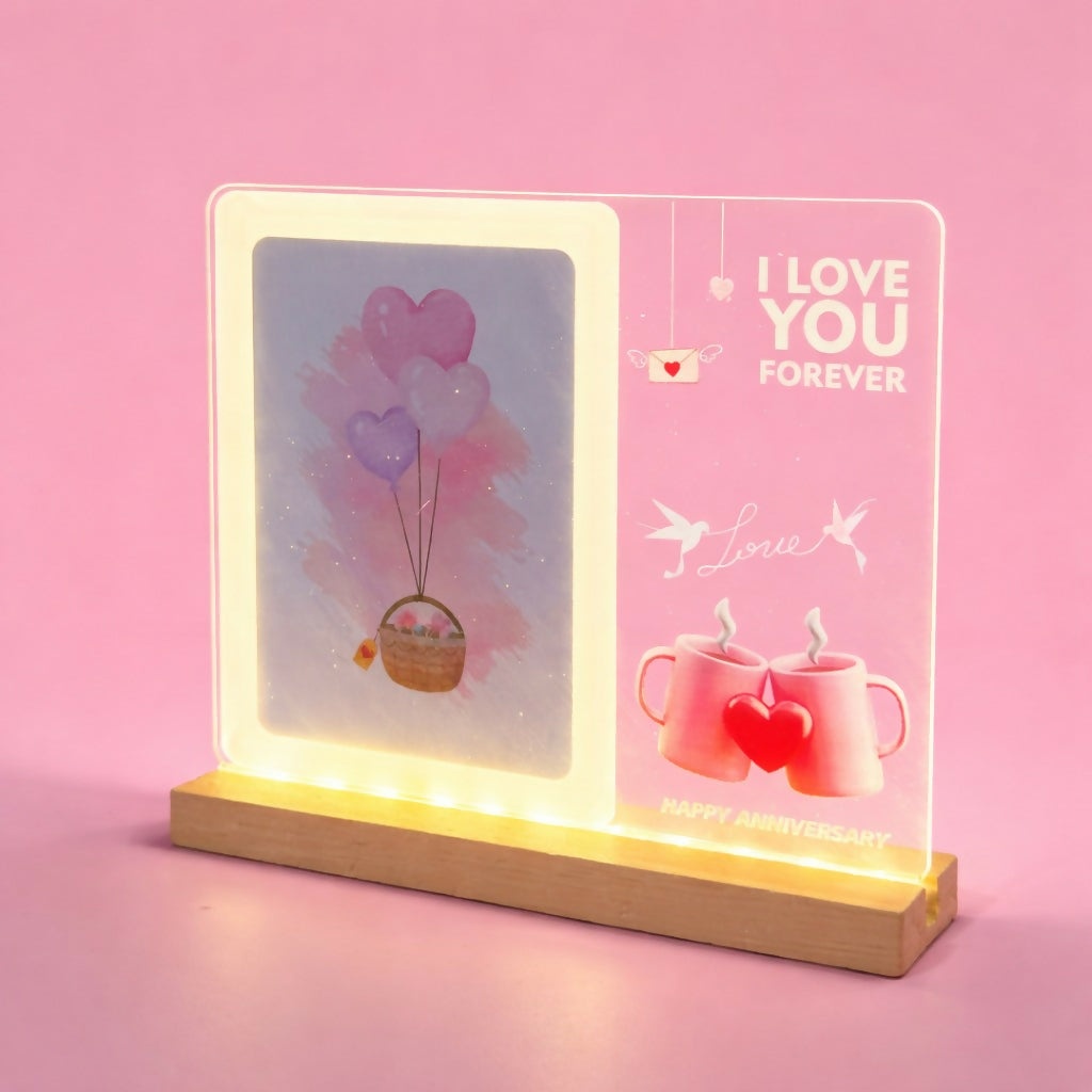 Add elegance and warmth to your décor with this LED Acrylic Message Lamp. Featuring a clear acrylic panel with printed design and a soft warm LED glow, this lamp blends modern style with emotional appeal.