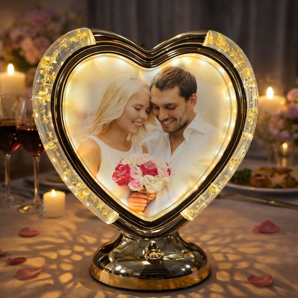 • Warm LED Lighting – Gentle illumination enhances the photo and adds decorative charm