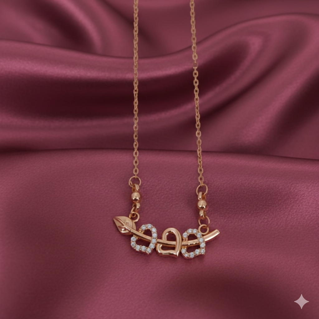 Rose Gold plated Interlocking Triple Heart Pendant Necklace For women and girls