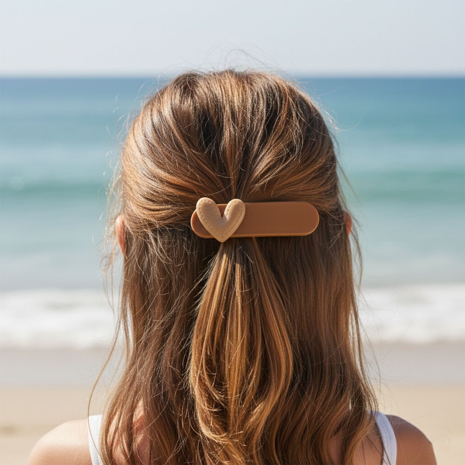 This decorative hair clip set is designed to add a subtle and elegant touch to everyday hairstyles. Each clip features a smooth heart-accent design that enhances simple looks while securely holding hair in place. The easy-to-use clip mechanism allows quick styling without pulling or discomfort, making it suitable for regular wear. Ideal for open hair, side clips, or light styling, these accessories help keep hair neatly arranged throughout the day. A stylish and practical addition to daily fashion and grooming essentials.