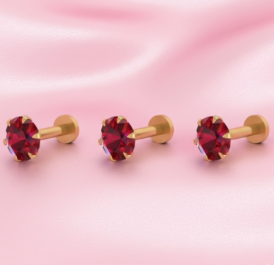 Gold plated Ruby Red AD Nosepin stud for women and girls Combo Pack of 3