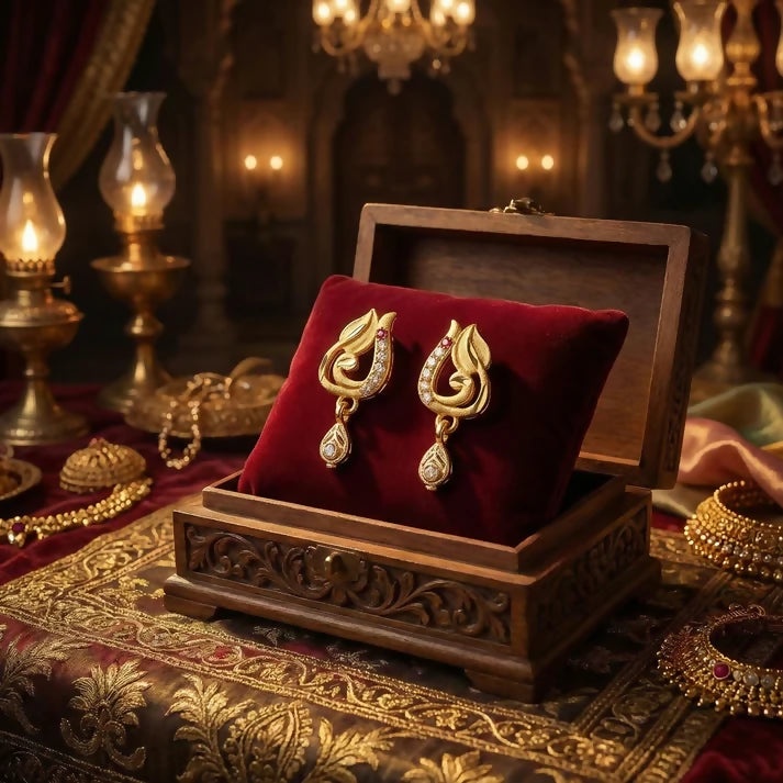 These elegant earrings are crafted with intricate detailing and a graceful drop design that adds charm to any look. Featuring refined motifs and sparkling accents, they offer a perfect balance of tradition and modern style. Suitable for festive occasions, celebrations, or everyday elegance, these earrings complement both ethnic and contemporary outfits. Their lightweight feel ensures comfortable wear throughout the day while enhancing your overall appearance with a subtle shine.