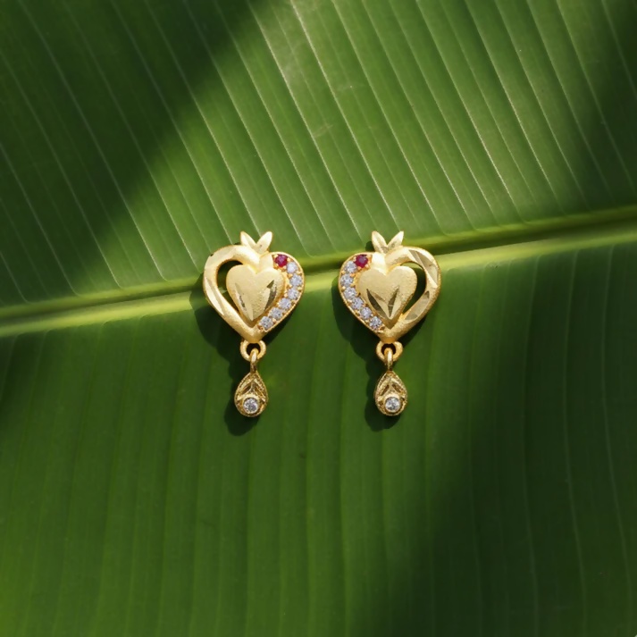 Heart Shaped Gold Finish Earrings With Crystal Border And Delicate Hanging Drop