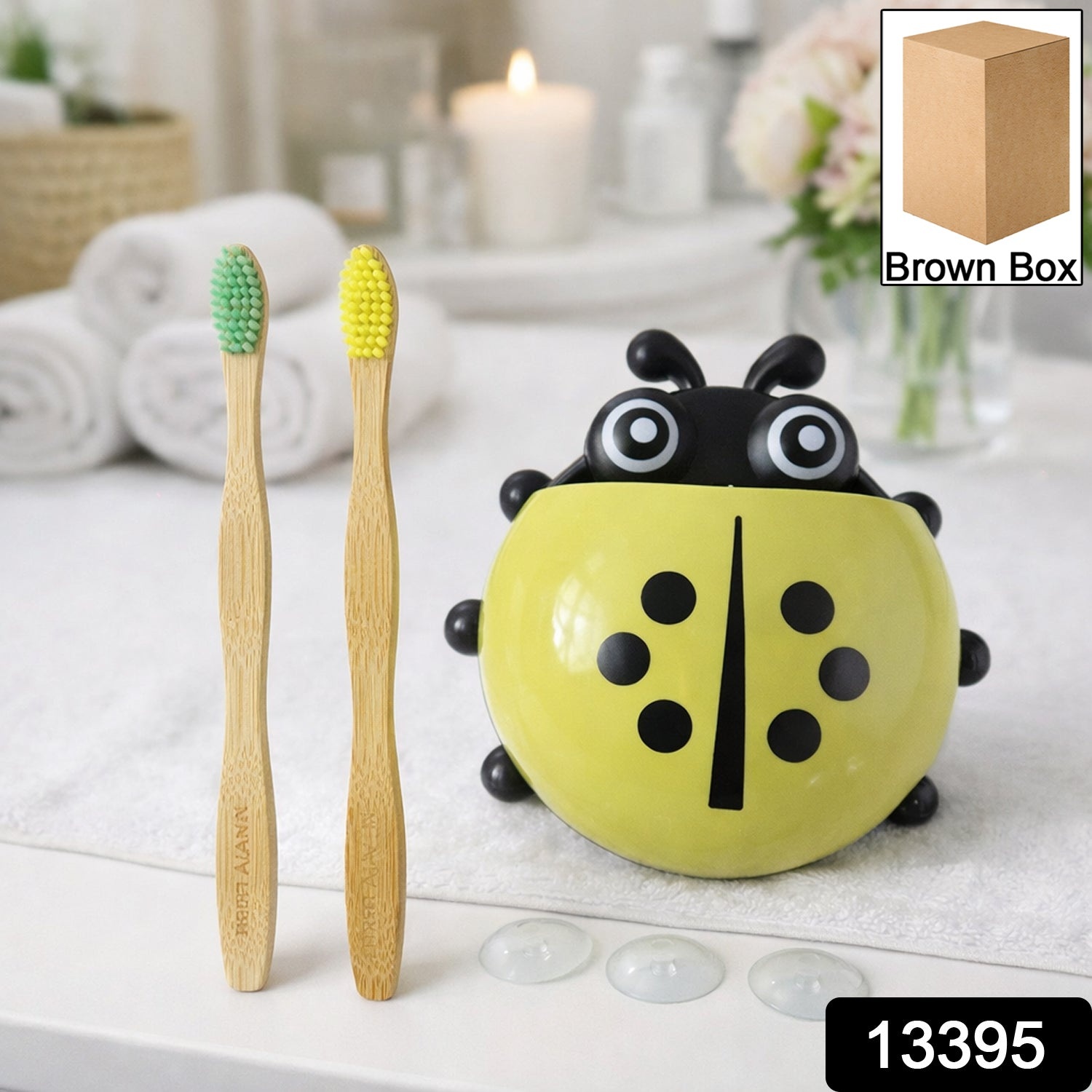 this toothbrush with holder combo set features an adorable ladybug-shaped wall mount holder paired with bamboo toothbrushes, making daily oral care both fun and hygienic. the compact holder keeps toothbrushes neatly stored, allowing proper airflow to maintain cleanliness while adding a playful decorative touch to the bathroom. the bamboo toothbrushes offer a comfortable grip and are suitable for everyday brushing routines. ideal for family bathrooms, kids’ wash areas, and modern homes, this combo helps maintain an organized, cheerful, and practical bathroom setup.