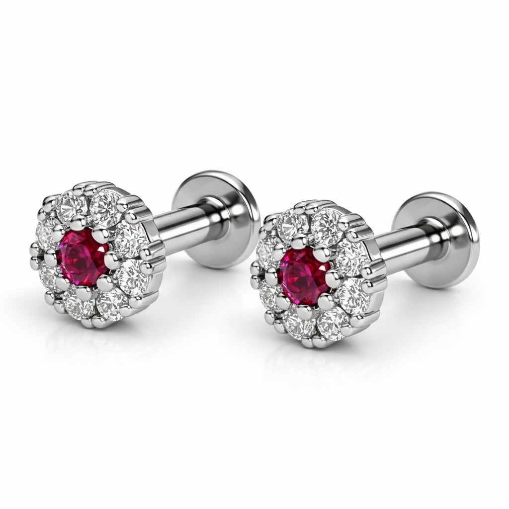 Ruby Floral Halo Nose Pin Silver plated Labret Stud Piercing Combo Pack of 2