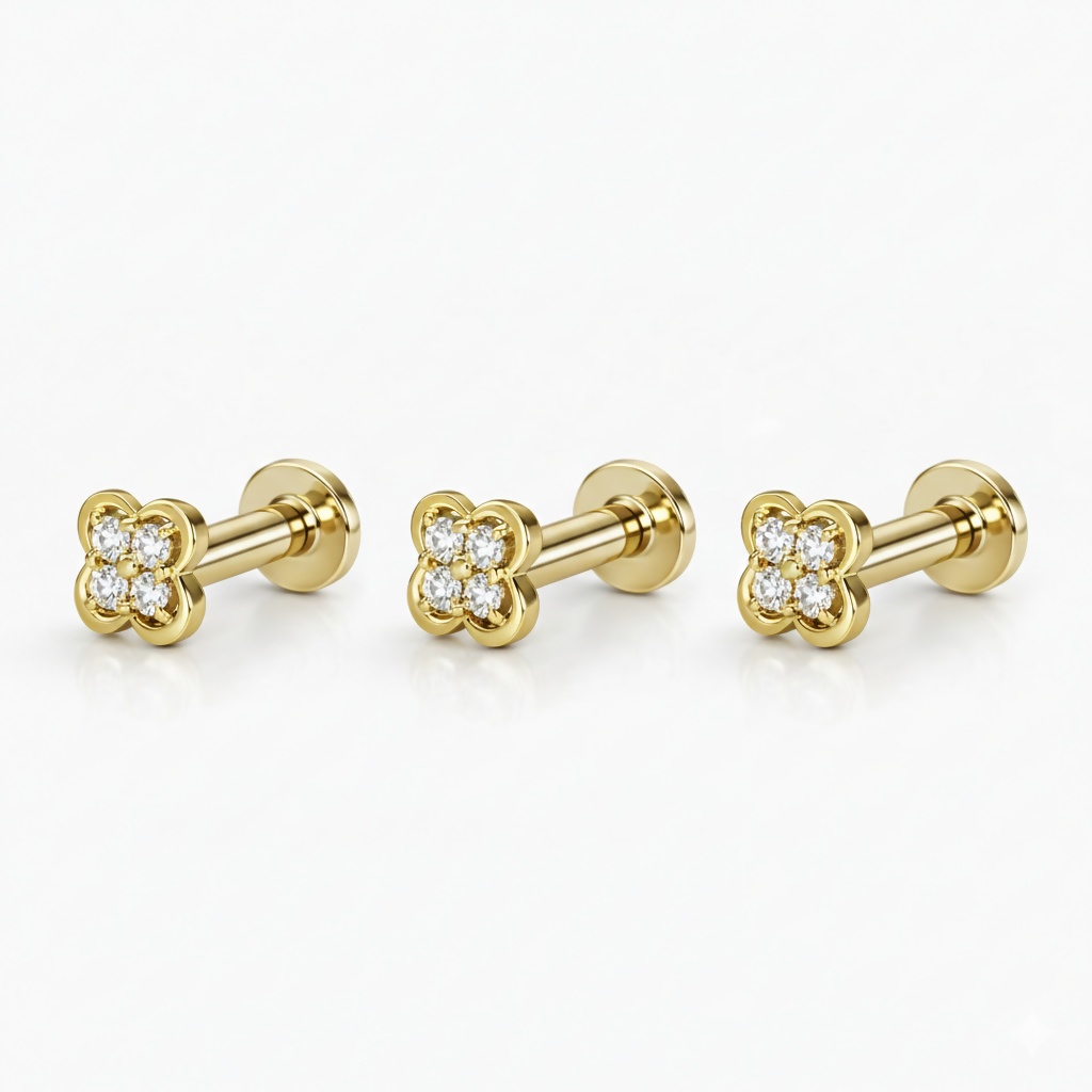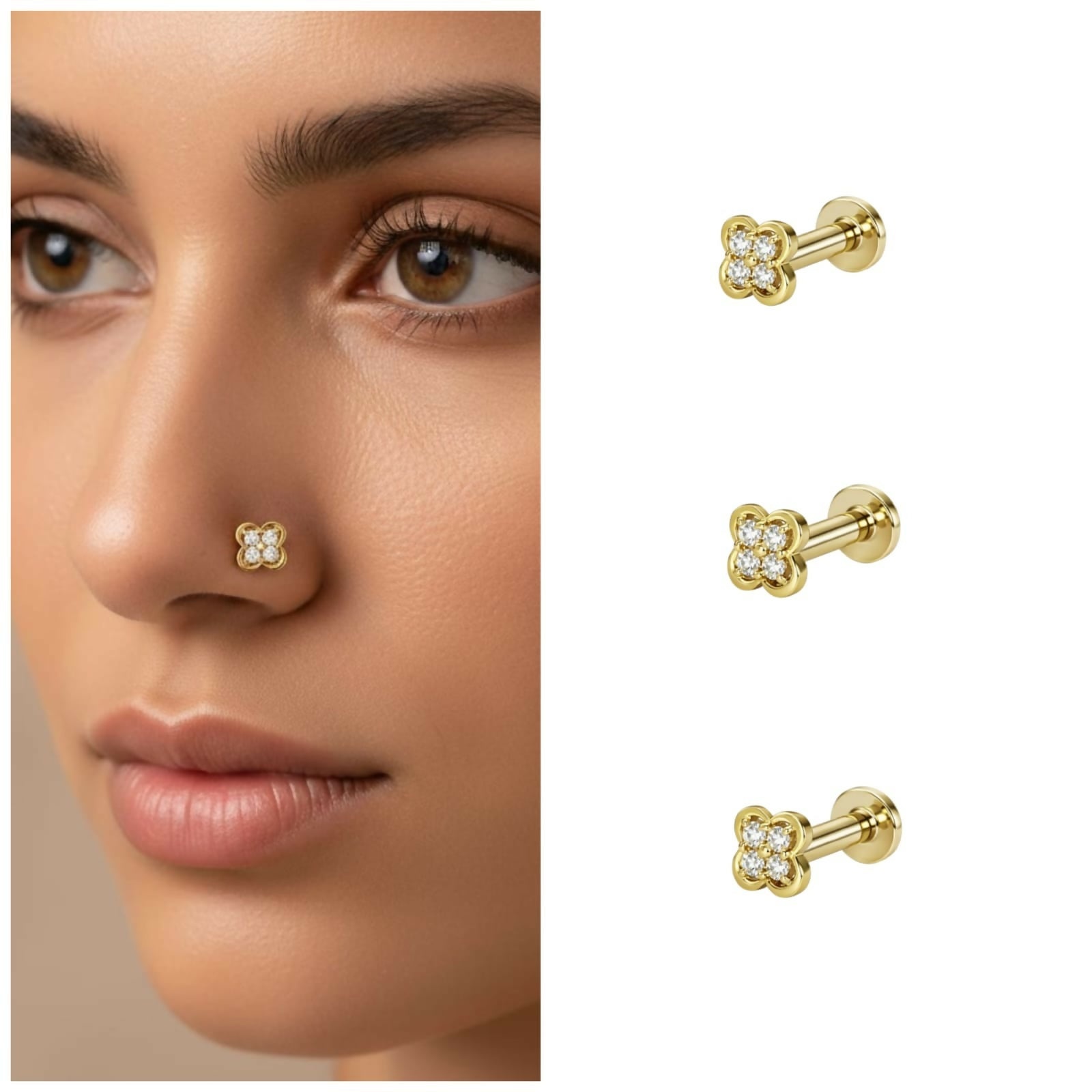 Elevate your everyday look with the timeless elegance of our Gold Plated Clover Nose Stud. Designed for those who appreciate delicate craftsmanship, this piece features a classic four-petal floral motif inspired by the lucky clover.