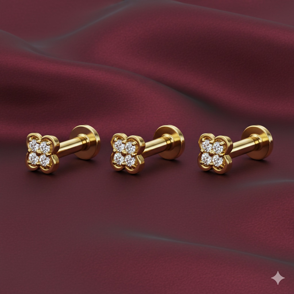 Gold Plated Clover AD Nosepin Stud Piercing for women and girls Combo Pack of 3