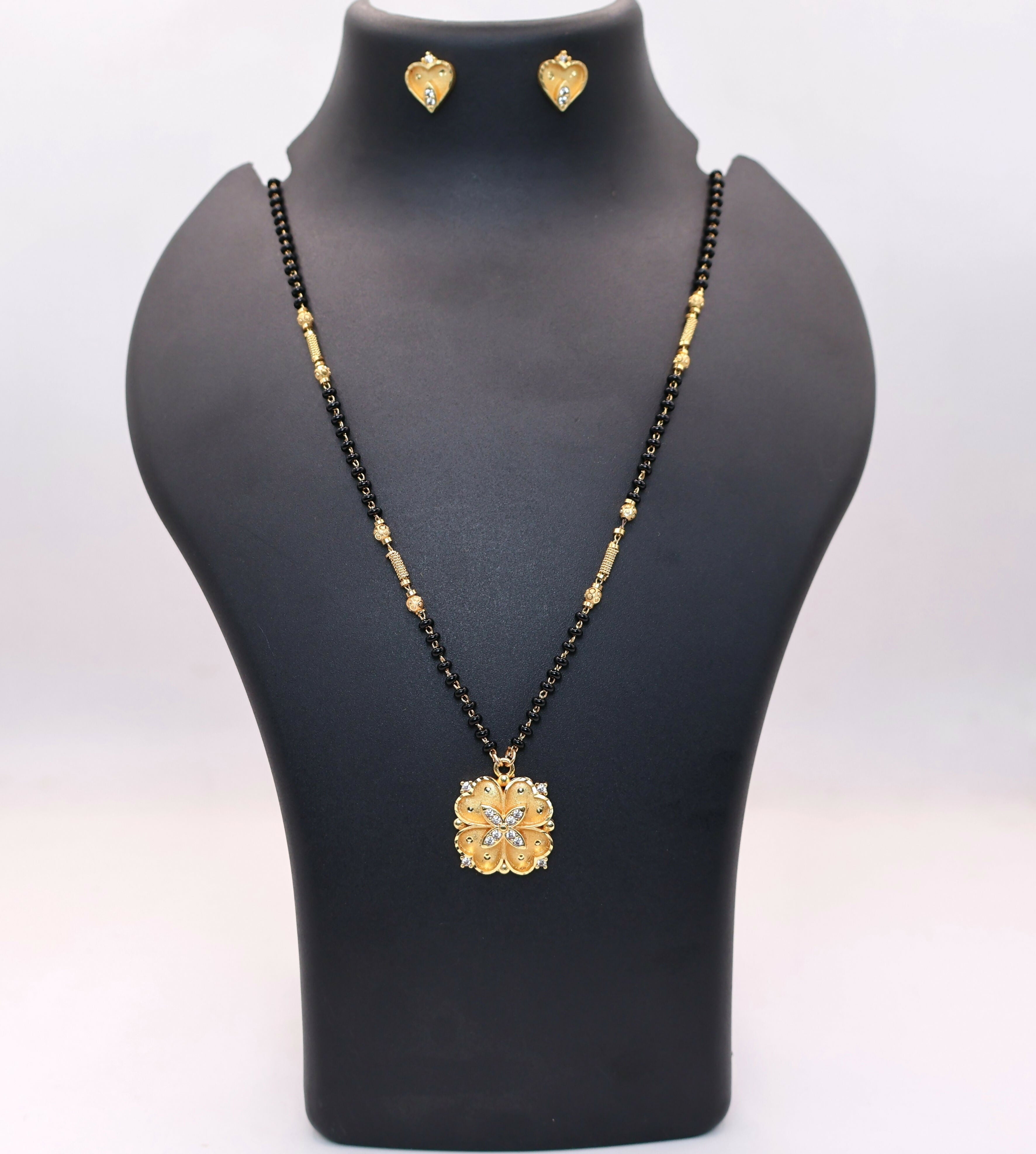 Gold Plated AD Heart Stud Earrings & Floral Mangalsutra Set for women