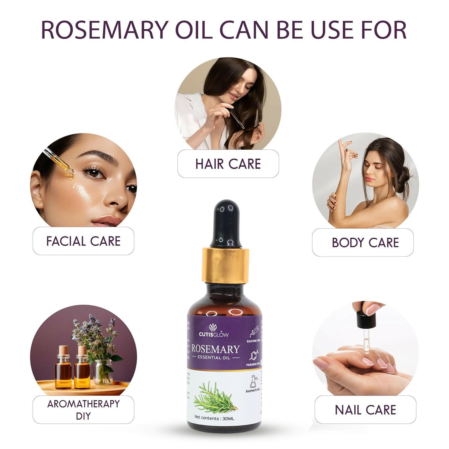 Eyelet Rosemary Essential Oil is a pure and natural essential oil known for its multiple beauty and wellness benefits. It helps stimulate hair growth, strengthen roots, and improve scalp health while reducing dandruff and dryness. When used for skincare, it helps refresh, tone, and rejuvenate the skin naturally. Suitable for aromatherapy, massage blends, and daily hair and skin care routines.