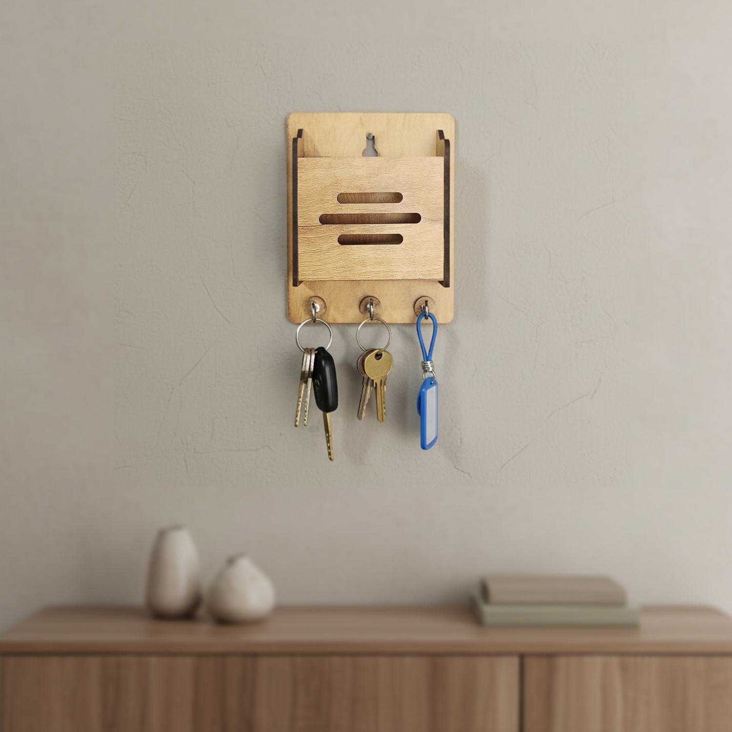 Keep your essentials organized in style with this Wooden Key Holder with Mobile Stand, designed for modern homes that value simplicity, functionality, and natural aesthetics. Crafted from premium engineered wood with a smooth natural finish, this compact wall-mounted organizer is perfect for everyday use.