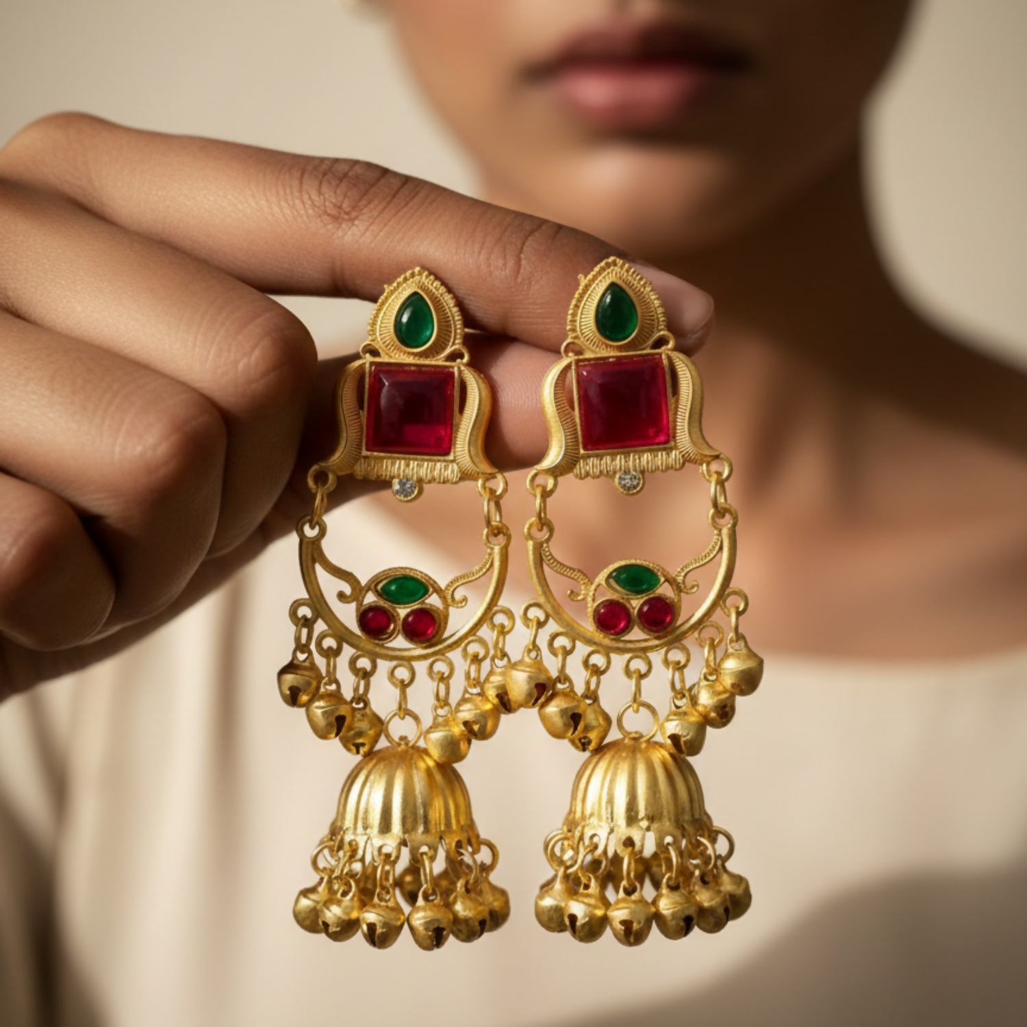 Designed for women who appreciate heritage jewellery with a luxurious feel, these Kashmiri earrings make a stunning addition to any premium jewellery collection and an unforgettable gift for special occasions.