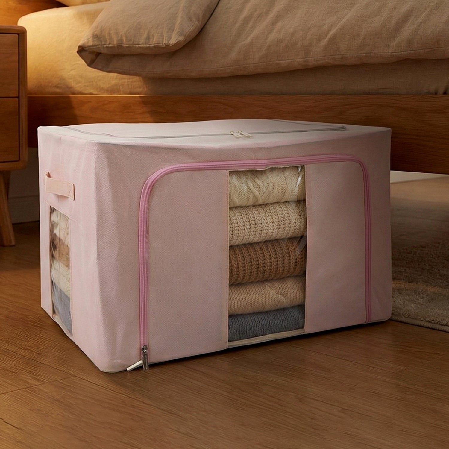foldable fabric storage box, clothes storage organizer, storage box with transparent window, wardrobe storage box, blanket storage bag, seasonal clothing storage, fabric storage container, foldable closet organizer, home storage box for clothes, stackable storage bin, lightweight fabric storage box, organizer box for wardrobe