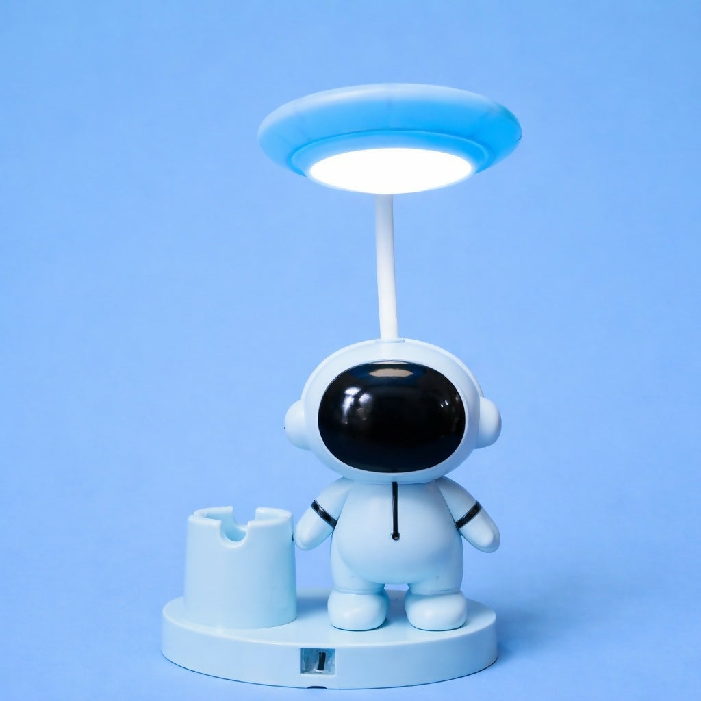 Bring creativity and functionality to your desk with this astronaut-themed LED desk lamp. Designed with a soft, eye-friendly LED light and a flexible neck, it provides comfortable illumination for reading, studying, or night use. The built-in pen holder helps keep stationery neatly organized, making it ideal for kids’ study tables, bedrooms, and office desks. Its compact size and playful space design also make it a great gifting option for children and space lovers.