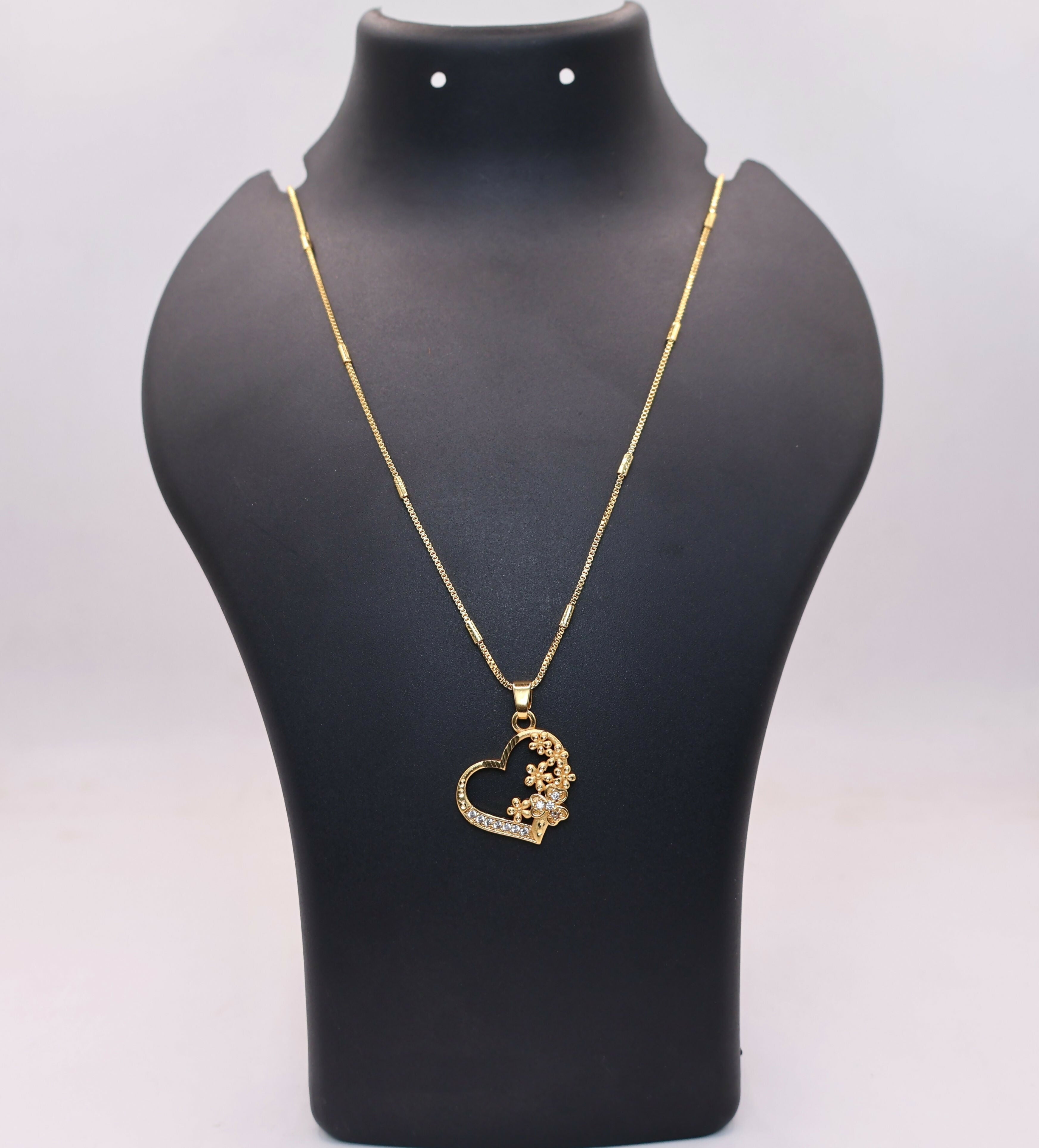 Gold-Plated AD Heart & Floral Pendant Necklace For women and girls