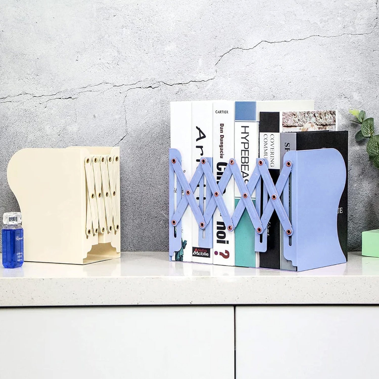 adjustable book stand, expandable book organizer, folding scissor book holder, heavy-duty book holder, study table book stand, office desk book organizer, home library book stand, shelf organization book holder, multipurpose book holder, foldable book stand, textbook and notebook organizer, portable book stand