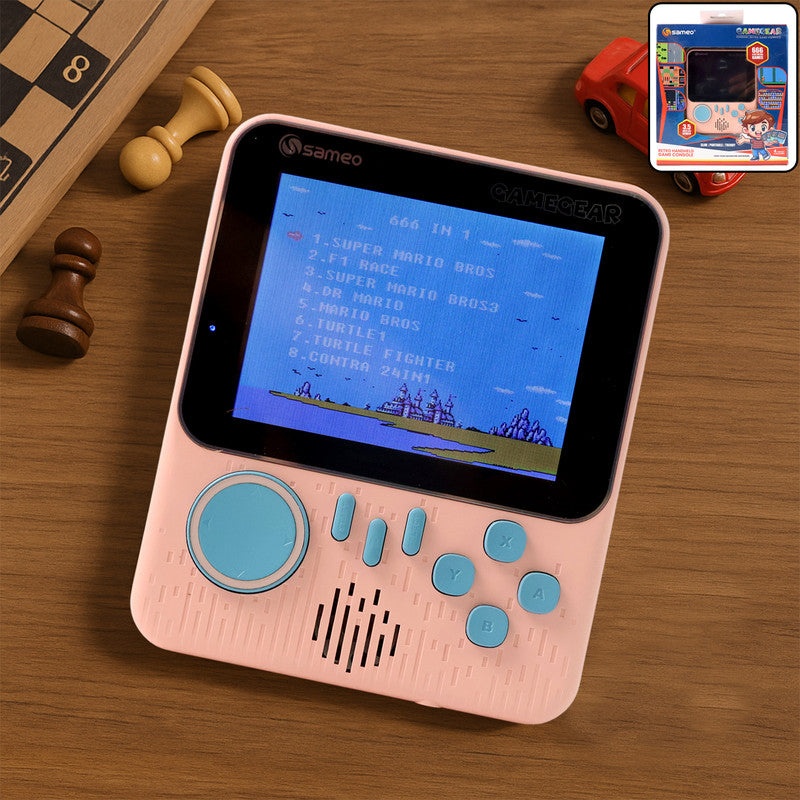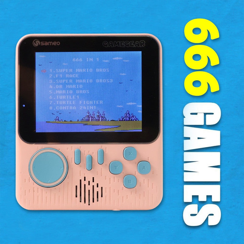 The Sameo GameGear Retro Handheld Console is the ultimate throwback to classic gaming, designed with a wide vibrant screen, ergonomic buttons, and an extensive library of 666 built-in games that guarantee endless fun for players of all ages. From iconic adventure and racing titles to timeless arcade and puzzle challenges, this portable gaming device offers a nostalgic experience without the need for cartridges or downloads. Its lightweight and compact design make it ideal for travel, casual play, or family entertainment, while the responsive controls and high-quality sound ensure smooth gameplay. Perfect as a gift for kids, retro gaming fans, or anyone who loves portable entertainment, the Sameo GameGear brings the joy of classic video games into the modern era.