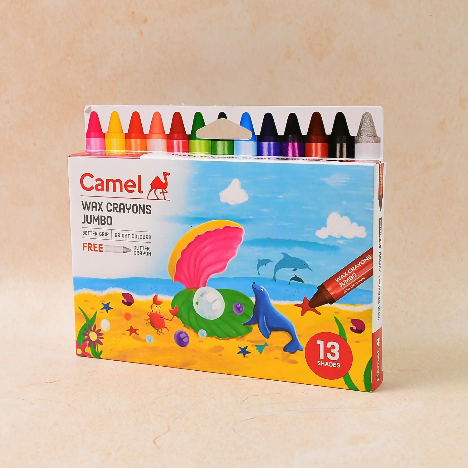 Camlin Wax Crayons Jumbo 13 Shades with Glitter Crayon