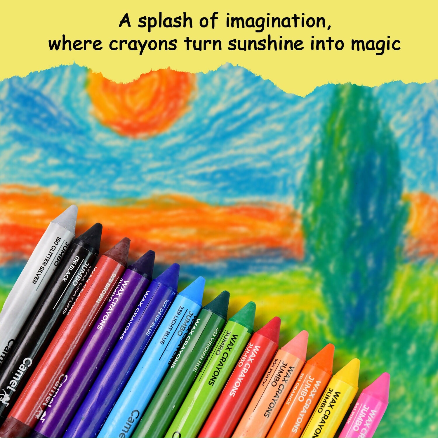 Camlin Wax Crayons Jumbo are designed to spark creativity and imagination in children. Made from non-toxic materials and conforming to international safety standards, they are completely safe for kids to use. These crayons come in jumbo size for better grip and durability, making them ideal for little hands. The set includes 13 vibrant shades along with a free glitter crayon for added fun and creative effects. Smooth coloring, bright pigments, and easy handling make them a perfect choice for young budding artists.