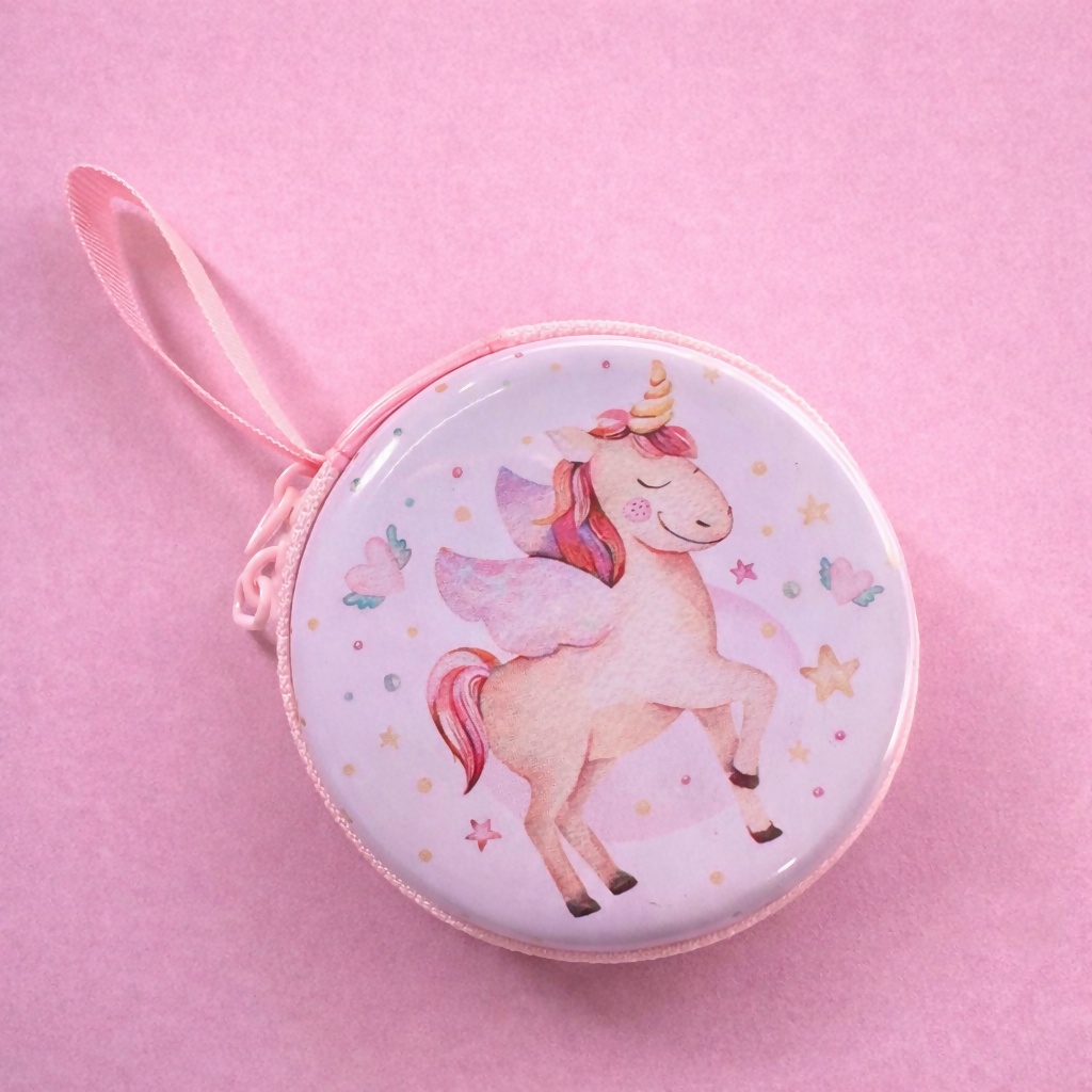 Unicorn Print Round Coin Pouch with Zipper & Wrist Strap for Kids and Gifting(DESIGN MAY VARY)