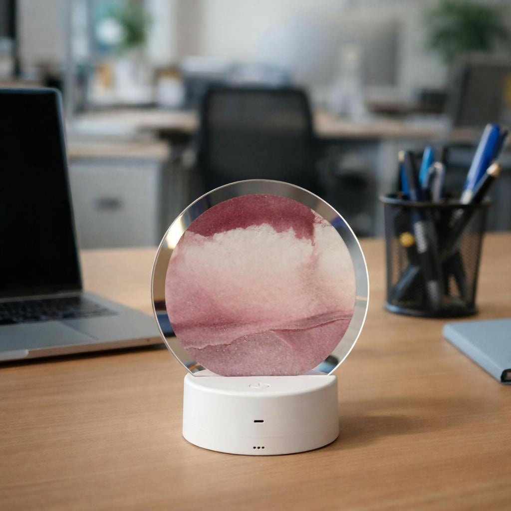 Features a fixed red-and-white layered sand design that looks artistic and soothing under LED light.