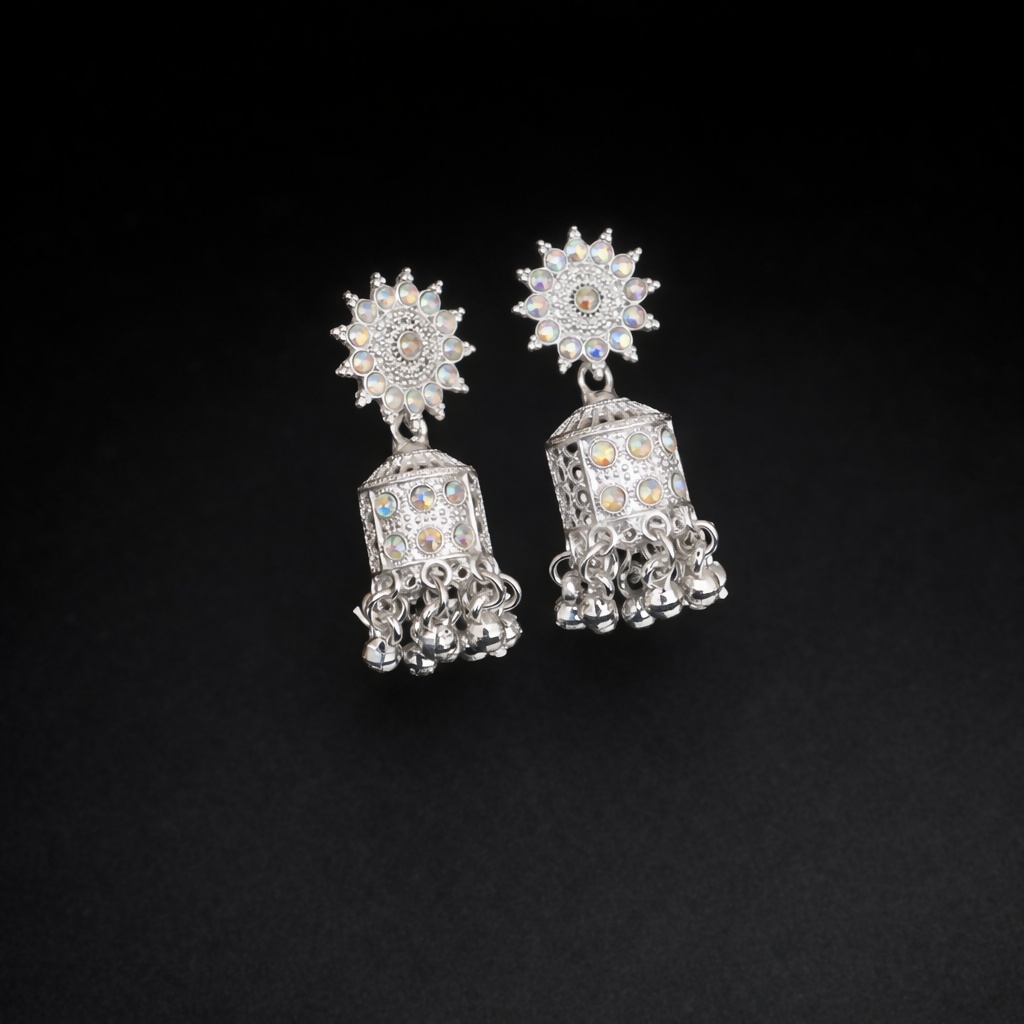 Elegant Silver Look Jhumka Earrings ✨