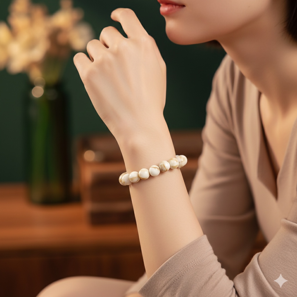 Add a touch of elegance to your everyday look with this beautifully crafted beaded bracelet. Designed with smooth round beads in a soothing white and beige marble finish, this bracelet offers a classy and minimal appeal.
