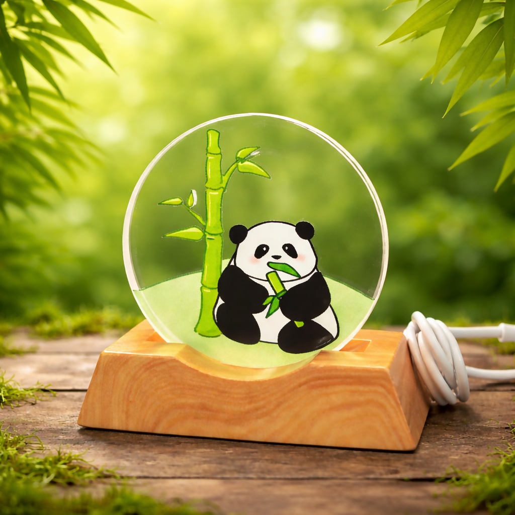 Panda Acrylic LED Night Lamp with Wooden Base USB Powered Decorative Light