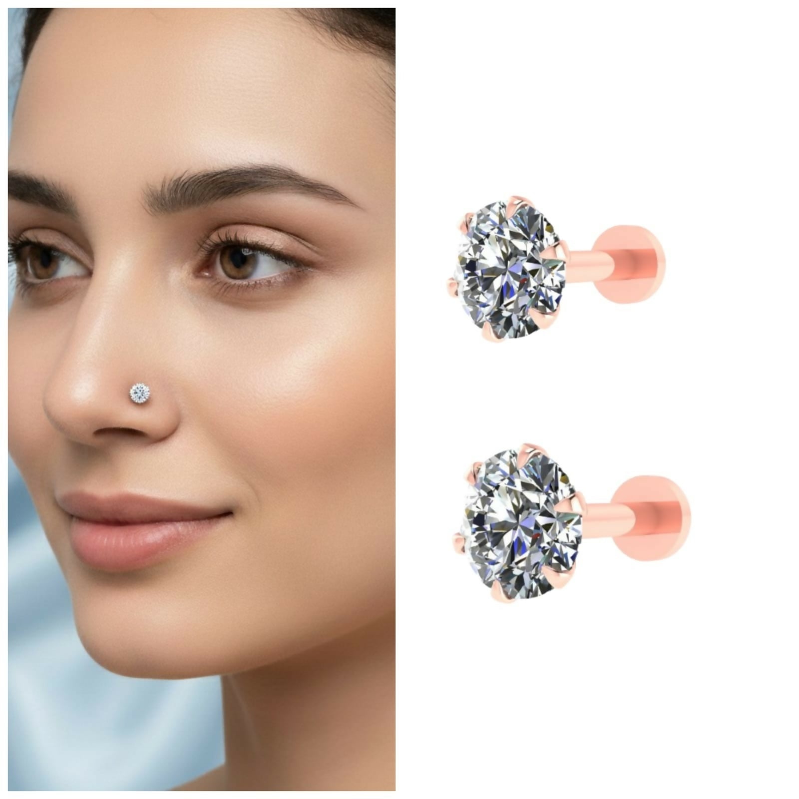 Rose Gold plated Labret Nosepin AD Piercing Stud for women and girls Combo Pack of 2