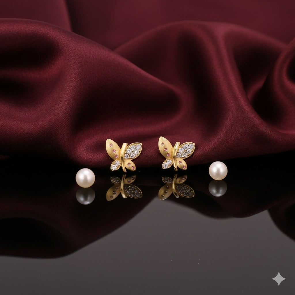 Gold Plated Matte Butterfly earing Studs with AD for women and girls