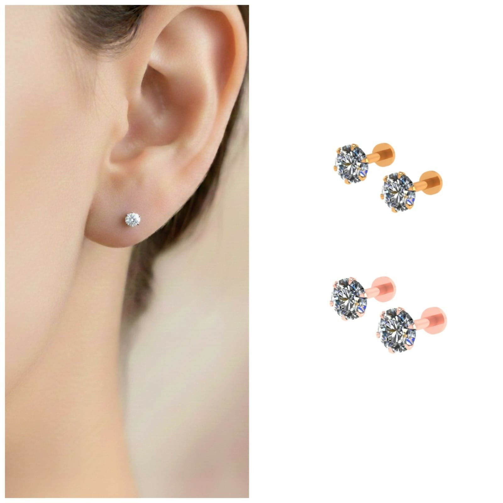 The standout feature is the flat back (labret) design, which sits flush against the skin. This eliminates the discomfort of traditional sharp posts, making them ideal for all-day wear, sleeping, or active lifestyles. They are a versatile choice for lobe, cartilage, tragus, or helix piercings.