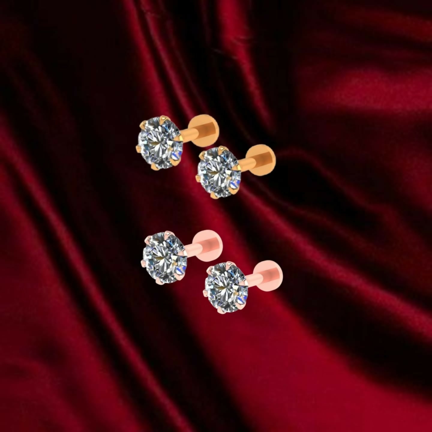 Gold Plated Round AD Solitaire Flat Back Stud Earrings Combo Pack of 2