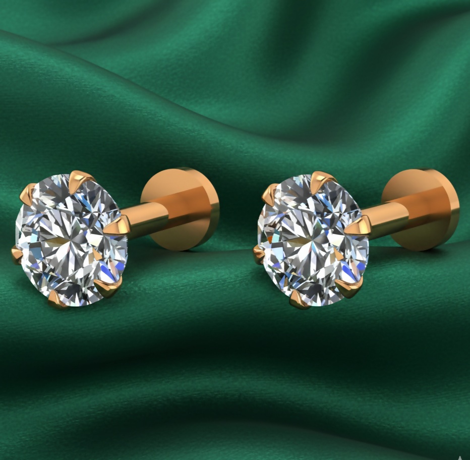 The classic round-cut design offers a sophisticated sparkle that transitions seamlessly from office wear to evening events. These earrings feature a flat-back (labret style) closure, ensuring maximum comfort for all-day wear and making them an ideal choice for lobe, helix, or cartilage piercings.