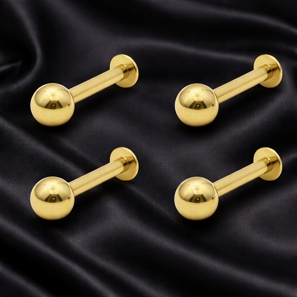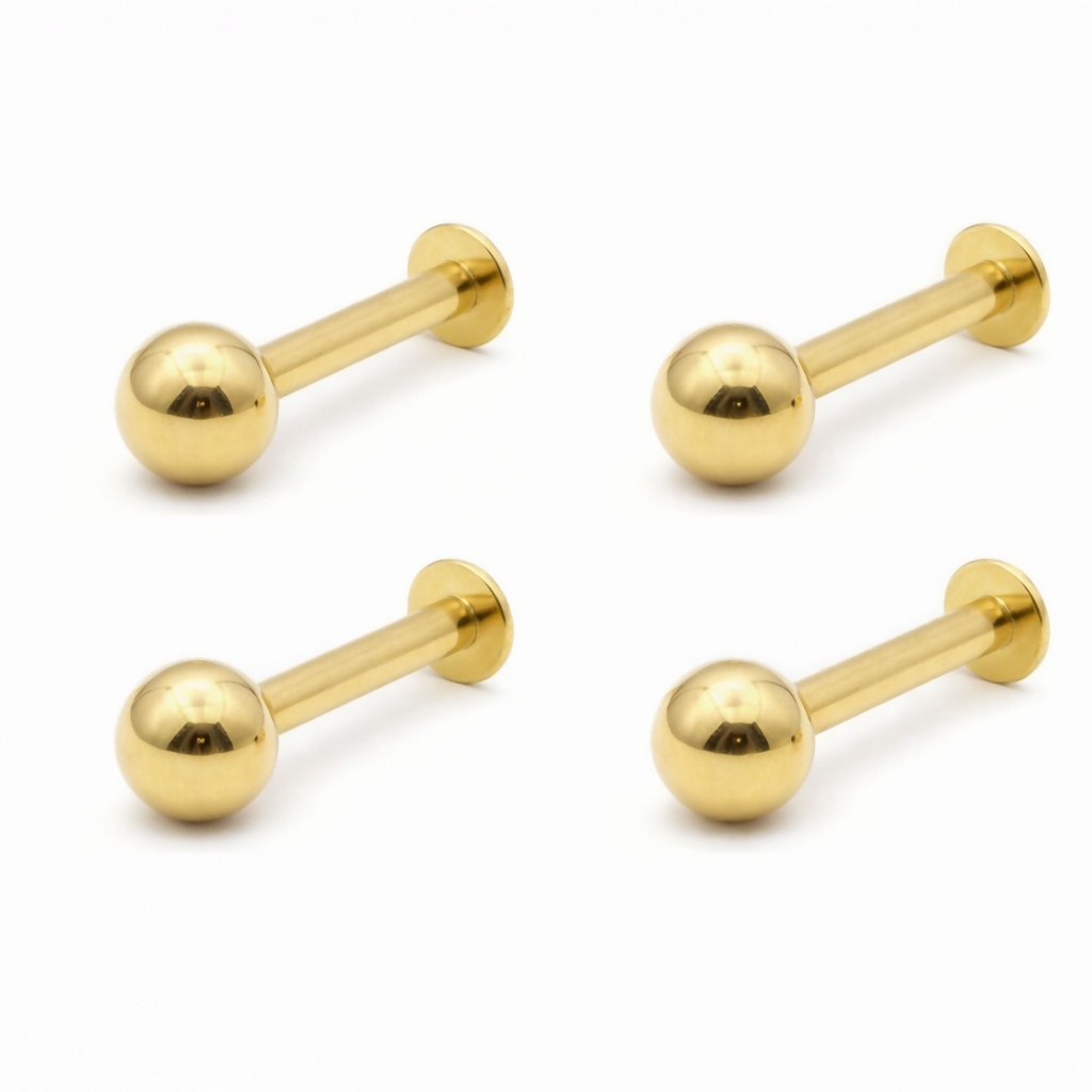 Gold Flat Back Labret Stud Earrings Tiny Ball Piercing for women and girls Combo Pack of 4