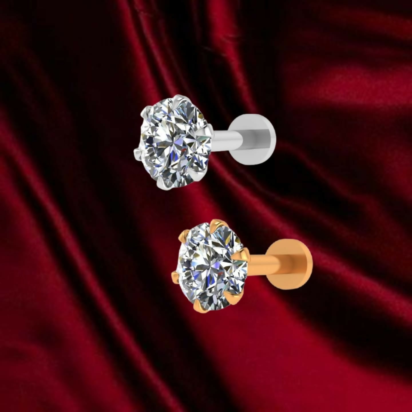 Designed as a flat-back labret, it provides a smooth, flush fit against the skin, making it ideal for nose, tragus, or cartilage piercings. Whether you prefer the cool brilliance of white gold or the warm glow of yellow gold, this stud is the perfect minimalist statement.