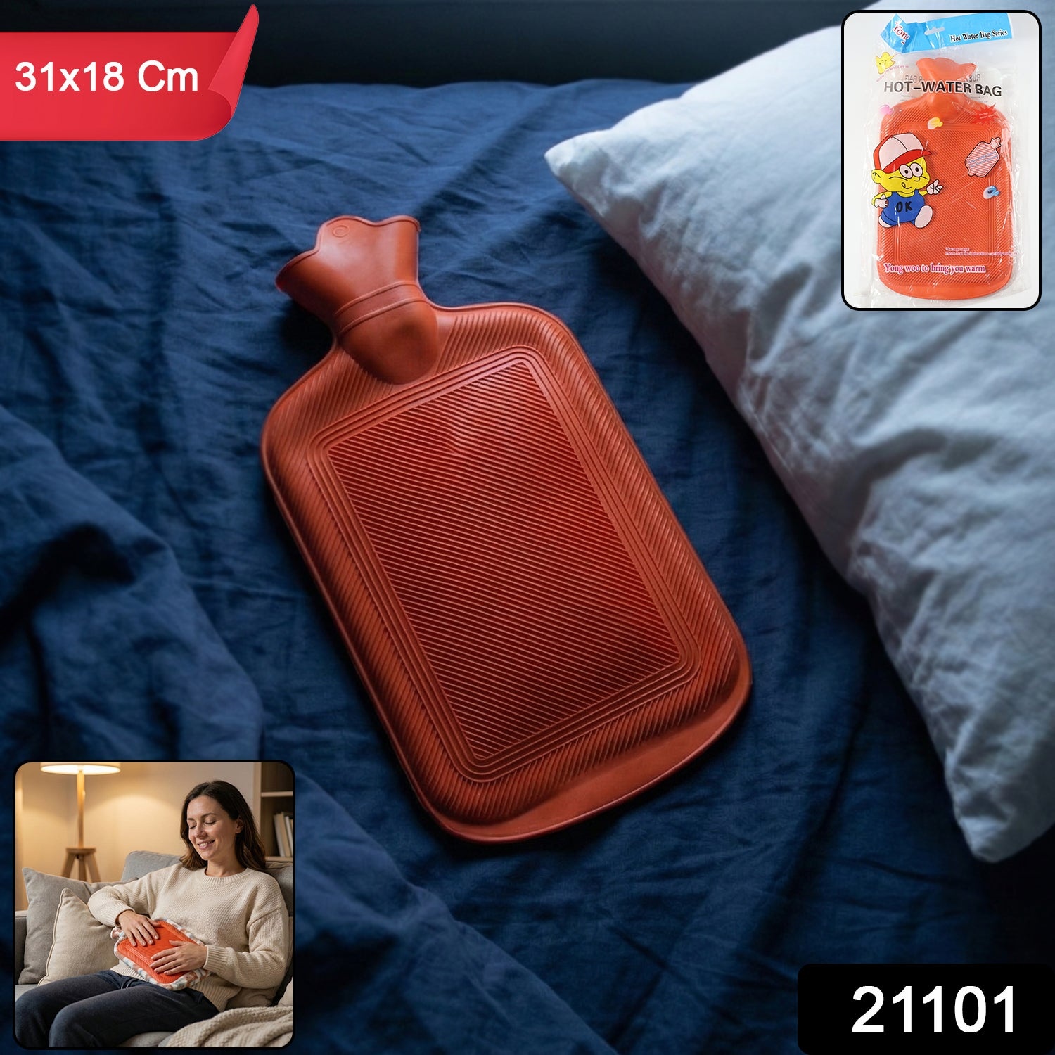 Premium Rubber Hot Water Bag for Pain Relief | Ideal for Cold Weather, Cramps, and Muscle Soreness | Durable, Leak-Proof, and Easy to Use (31x18 Cm / 1 Pc)