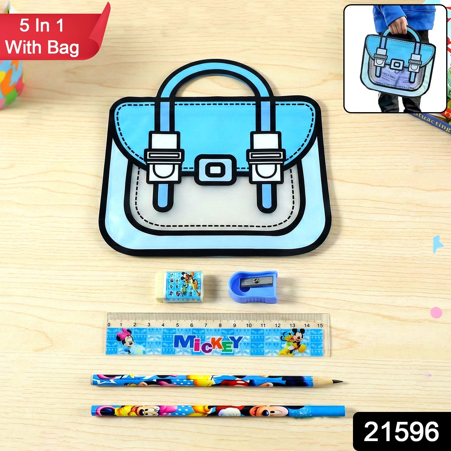 Kids 5 in 1 Stationery Kit with Cartoon Style Carry Bag for School Use, Drawing, Writing and Daily Learning Activities, Kids Stationery set