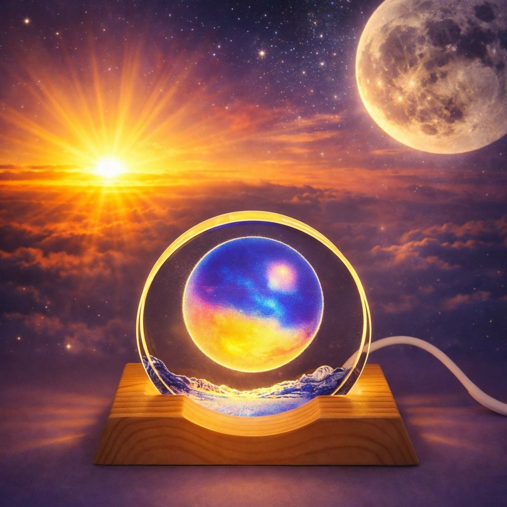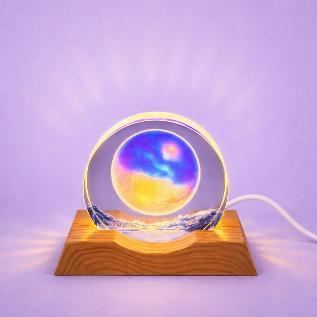 Galaxy Moon 3D Acrylic LED Night Lamp with Wooden Base for Home Decor
