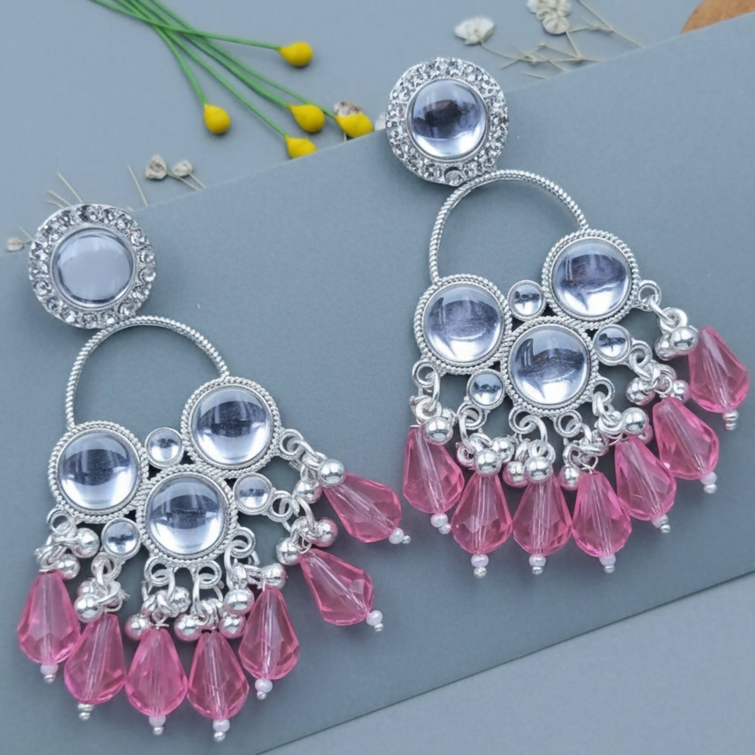 Details: The earrings are adorned with large, polished round mirror (Kundan-style) inlays that catch the light beautifully.