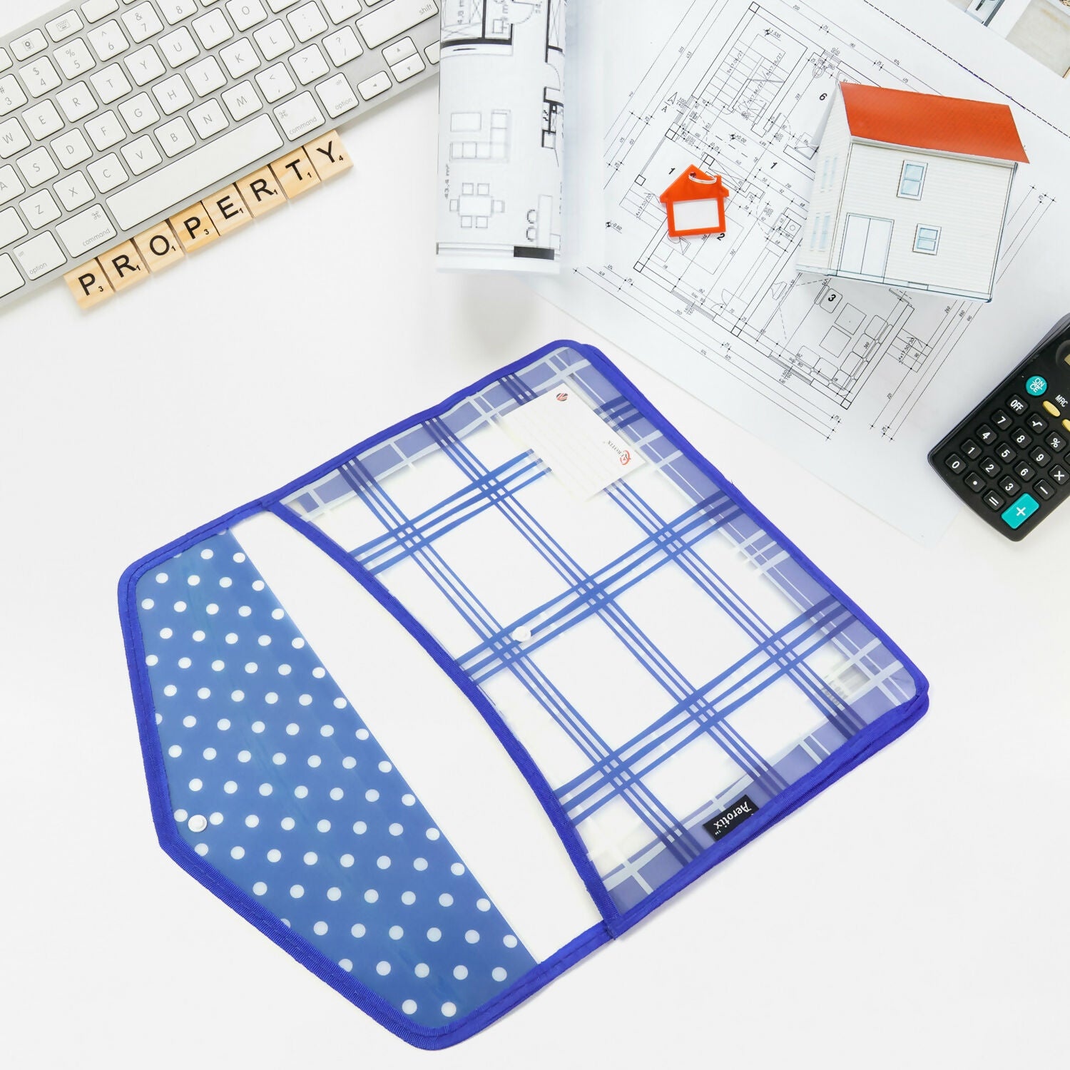 This plastic button file folder is designed to store and protect documents neatly for everyday office, school, and home use. It features a secure button closure that keeps papers safely enclosed while allowing easy access when needed. The lightweight yet sturdy construction helps protect documents from dust, folds, and minor spills. Available in 5 different multicolour designs, this product is sold as 1 piece, and the design will be dispatched at random based on availability. Ideal for organizing bills, certificates, notes, worksheets, and important papers in a compact and convenient way.