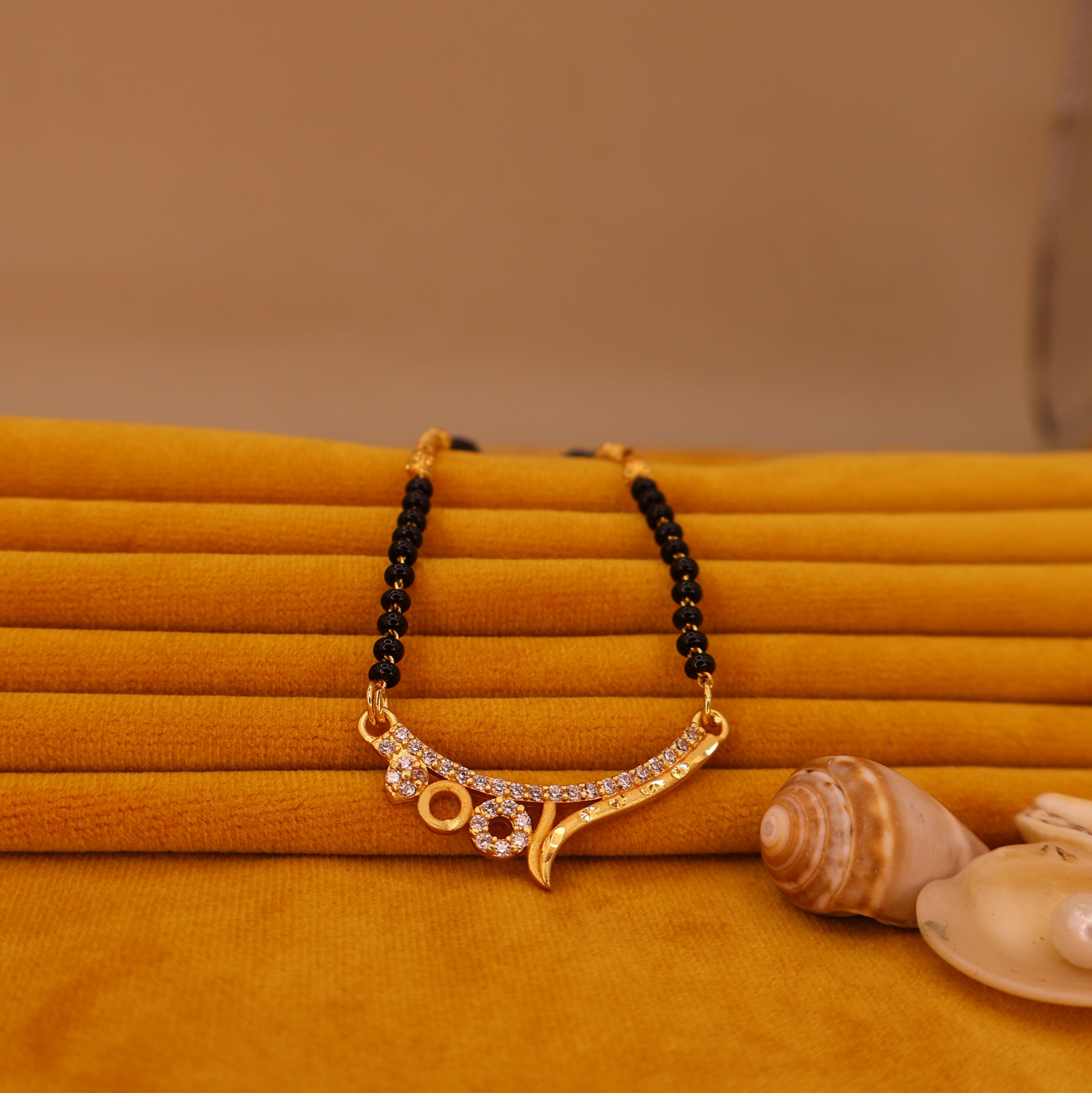 Chain: Classic black bead (mani) chain, symbolizing protection and marital harmony, finished with a sturdy gold-plated clasp.