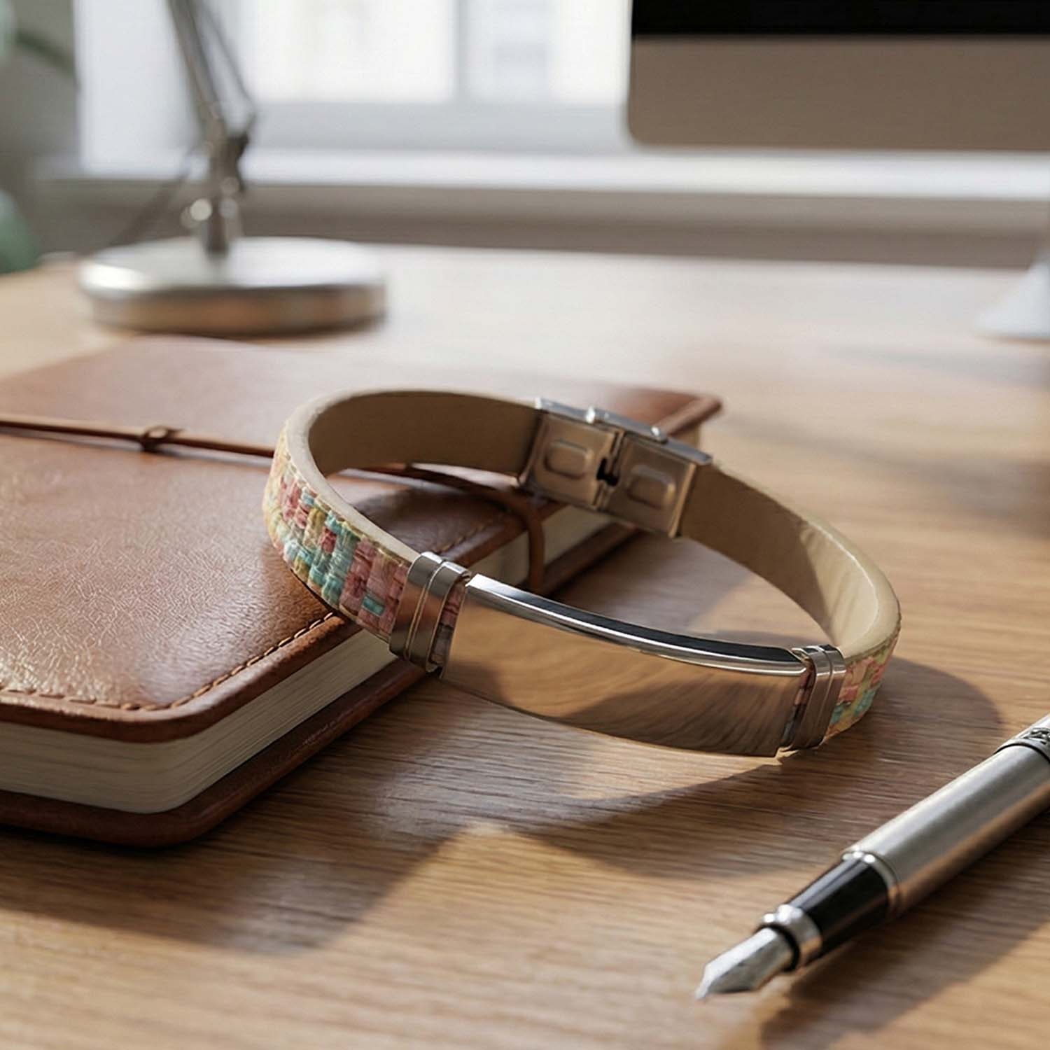 This premium fancy wrist bracelet features a sleek stainless steel body combined with an elegant multicolor woven pattern that adds a modern and stylish touch to everyday wear. Designed to suit both casual and semi-formal looks, this bracelet offers a balanced blend of durability and visual appeal. The smooth finish and comfortable fit make it suitable for all-day use, while the secure lock clasp ensures it stays firmly in place during daily activities. A versatile accessory, it enhances your personal style without being overpowering.