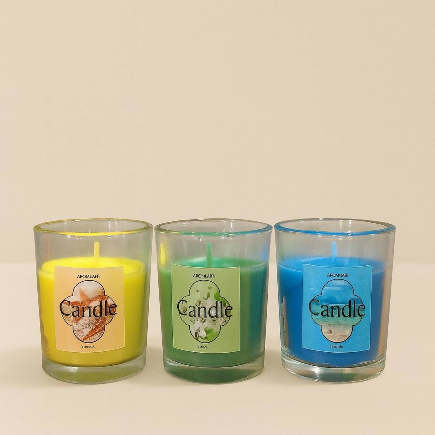 Bring warmth, color, and fragrance into your home with this Aroma Art Set of 12 Scented Glass Candles. Each candle is crafted in a clear glass jar with vibrant wax colors and soothing fragrances, making them a perfect blend of aesthetics and aromatherapy.