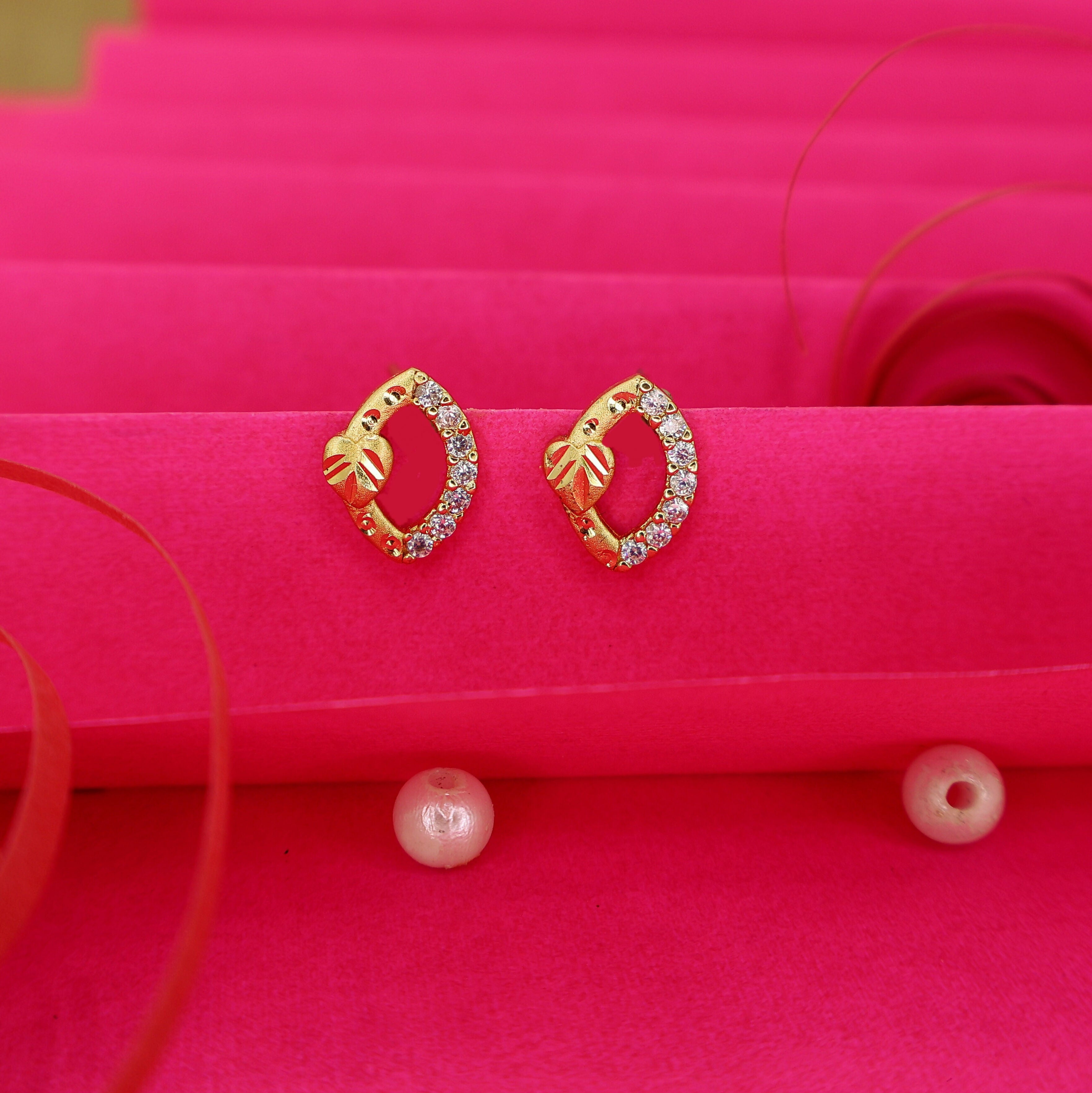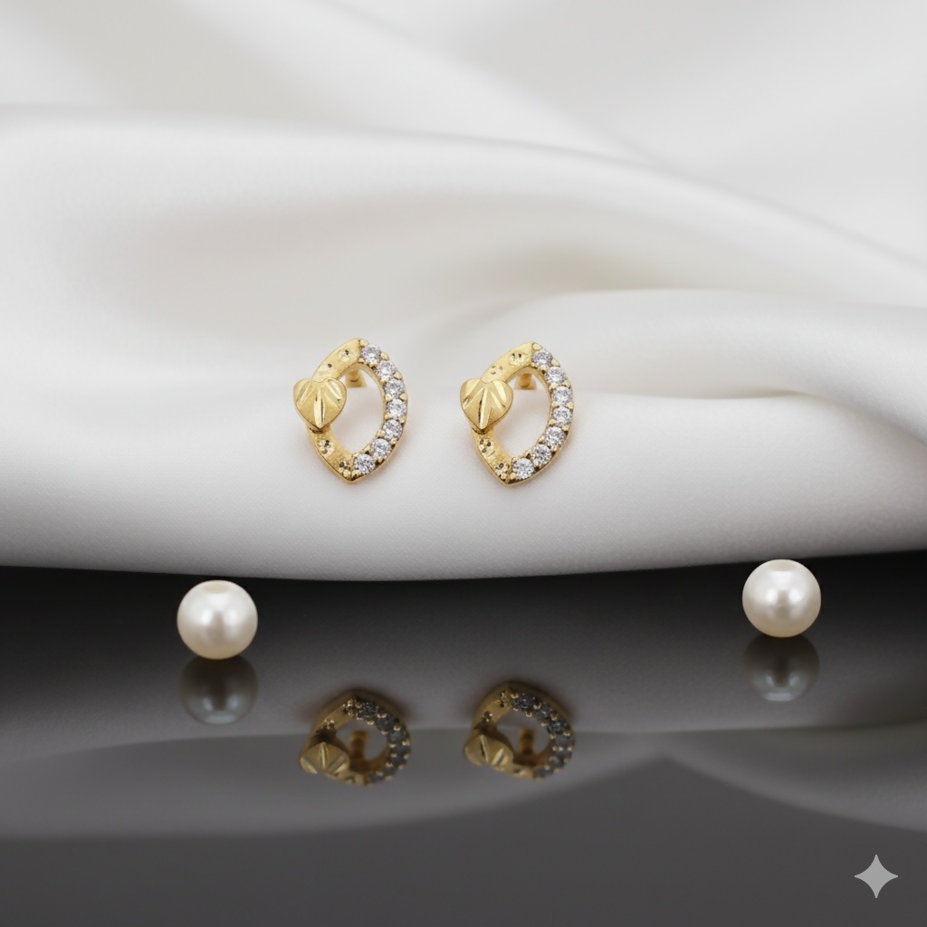 Gold-Plated AD Oval Stud Earrings | Daily Wear Leaf Design for women and girls